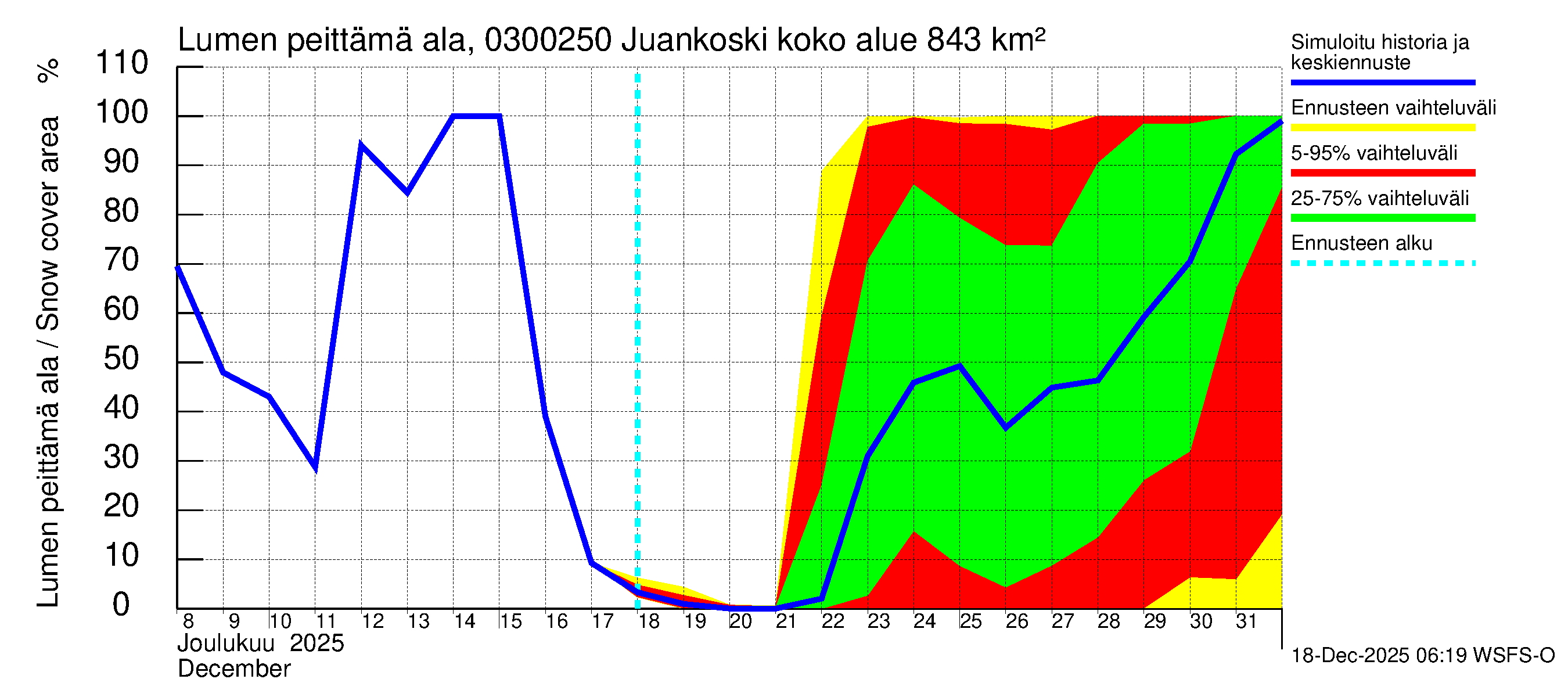 Hiitolanjoen vesistöalue - Juankoski: Lumen peittämä ala