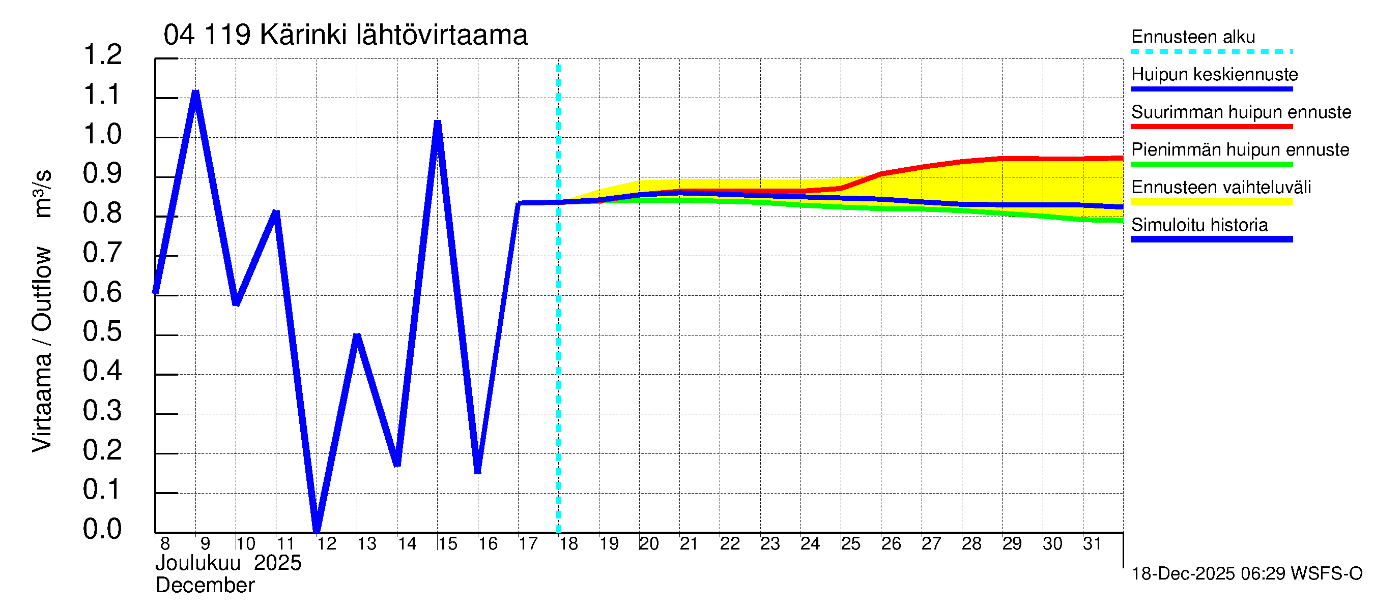 Vuoksen vesistöalue - Kärinki: Lähtövirtaama / juoksutus - huippujen keski- ja ääriennusteet