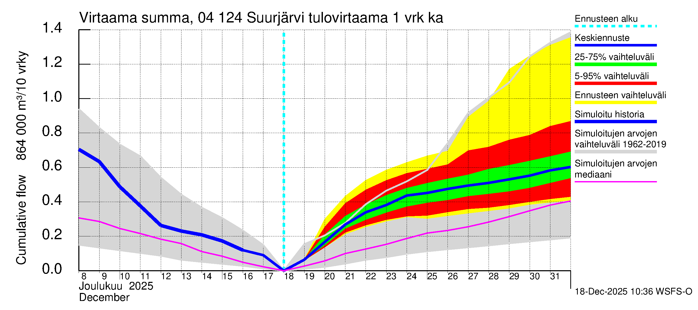 Vuoksen vesistöalue - Suurjärvi: Tulovirtaama (usean vuorokauden liukuva keskiarvo) - jakaumaennuste