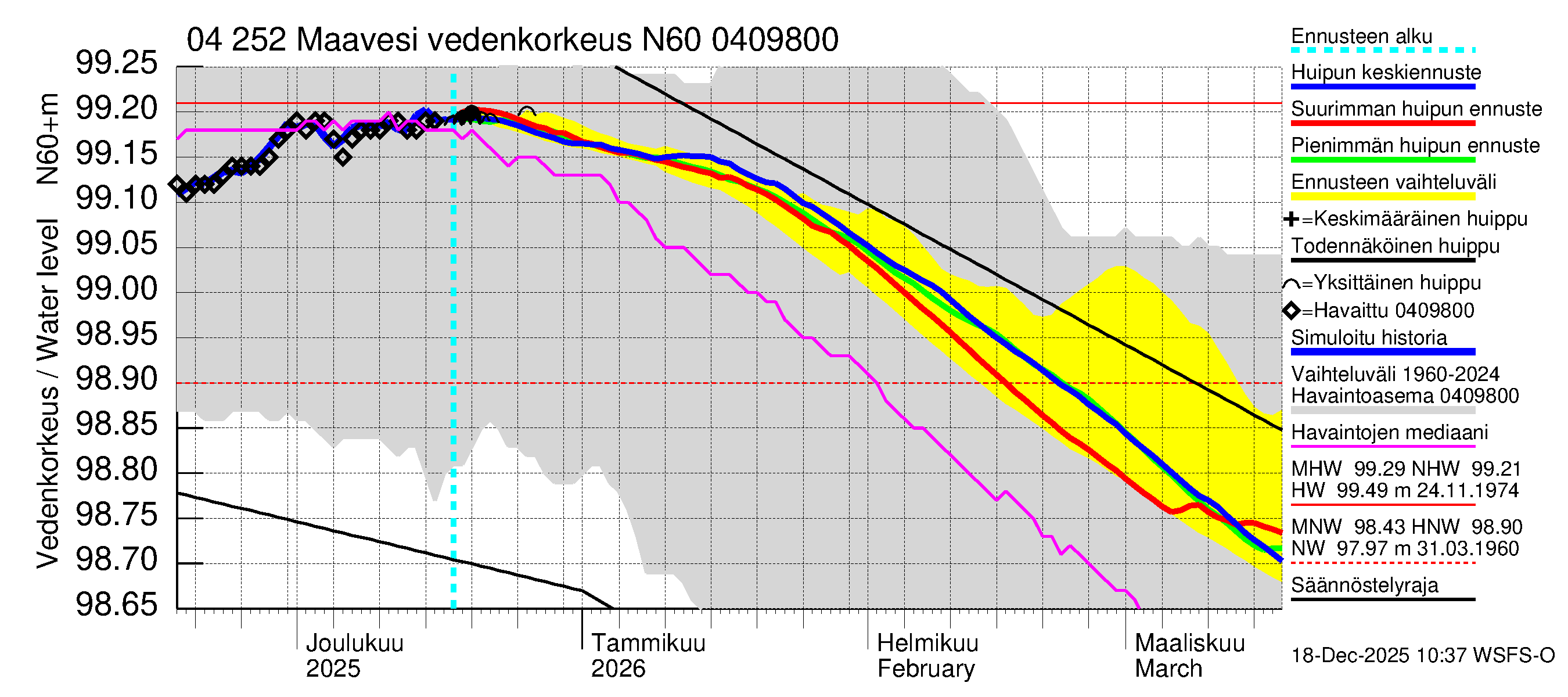 Vuoksen vesistöalue - Maavesi: Vedenkorkeus - huippujen keski- ja ääriennusteet