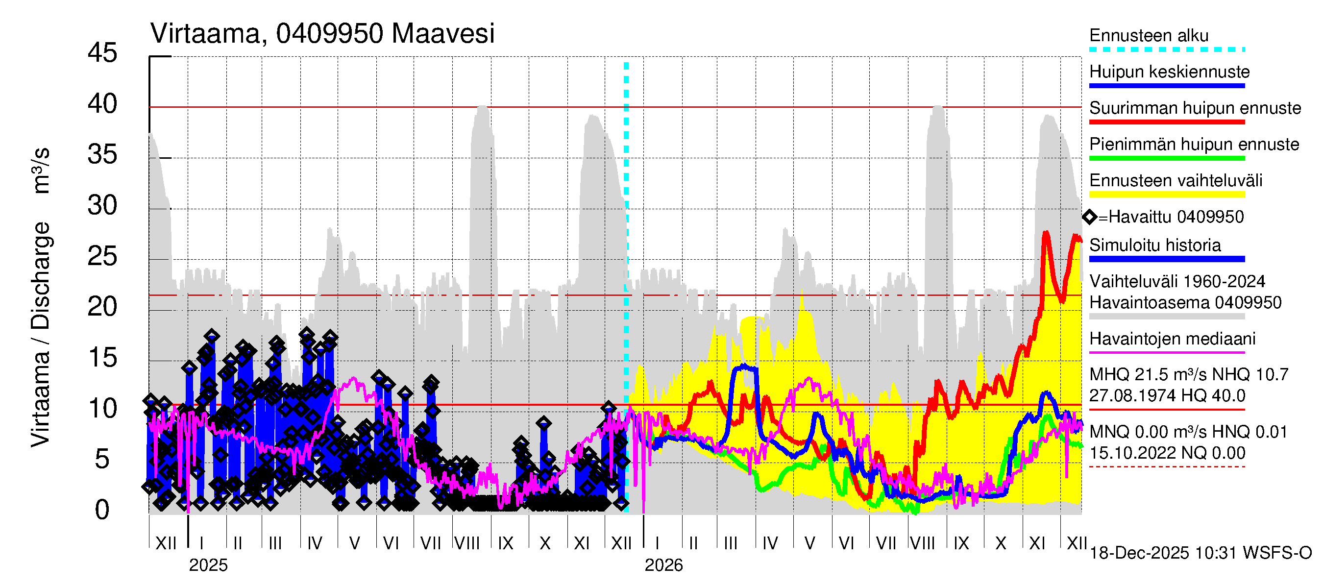 Vuoksen vesistöalue - Maavesi: Lähtövirtaama / juoksutus - huippujen keski- ja ääriennusteet