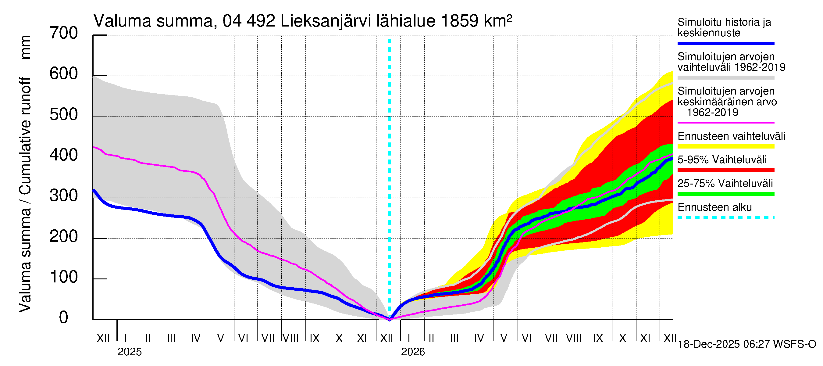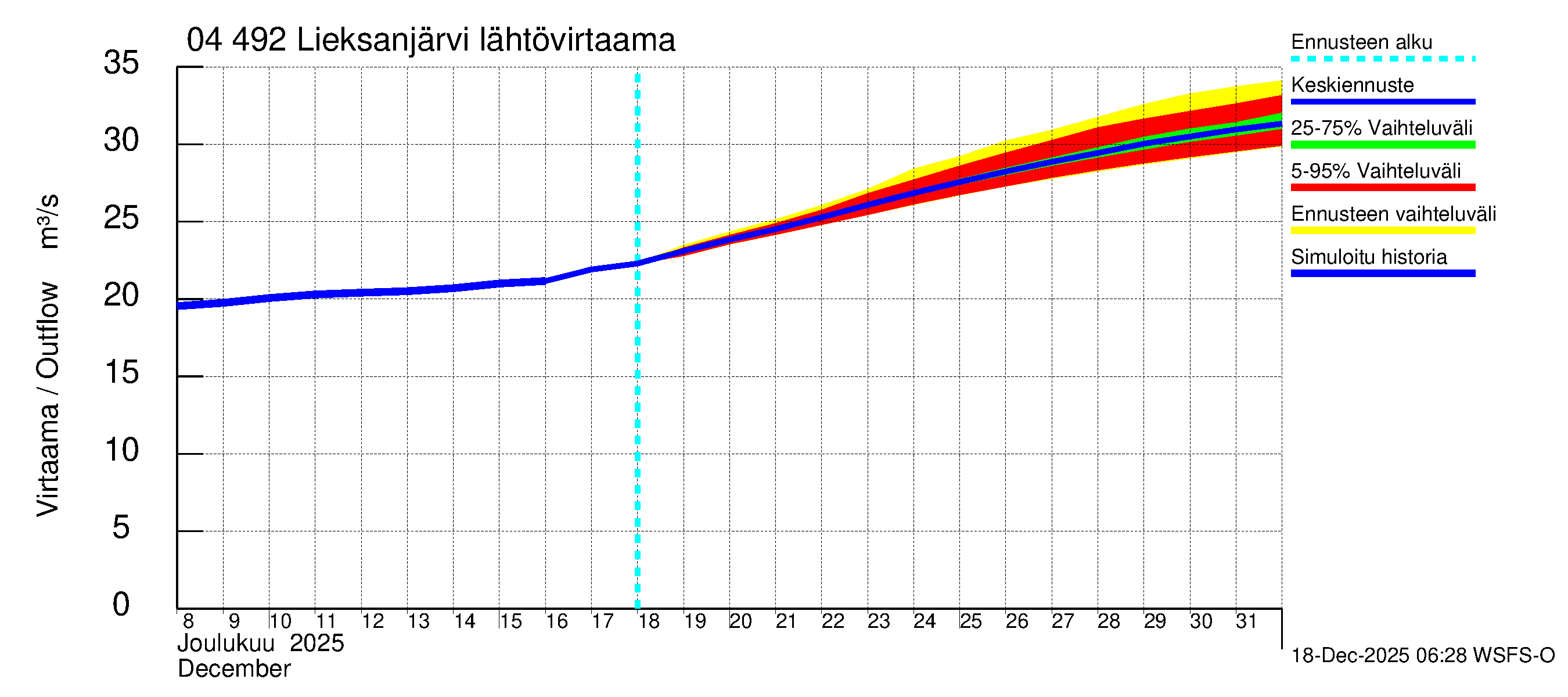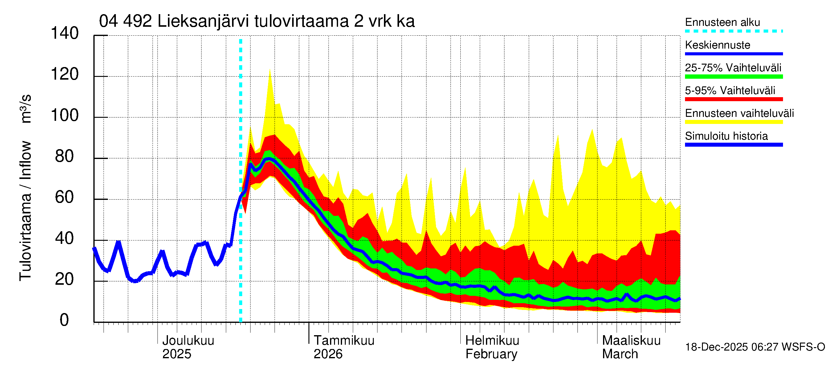 Vuoksen vesistöalue - Lieksanjärvi: Tulovirtaama (usean vuorokauden liukuva keskiarvo) - jakaumaennuste