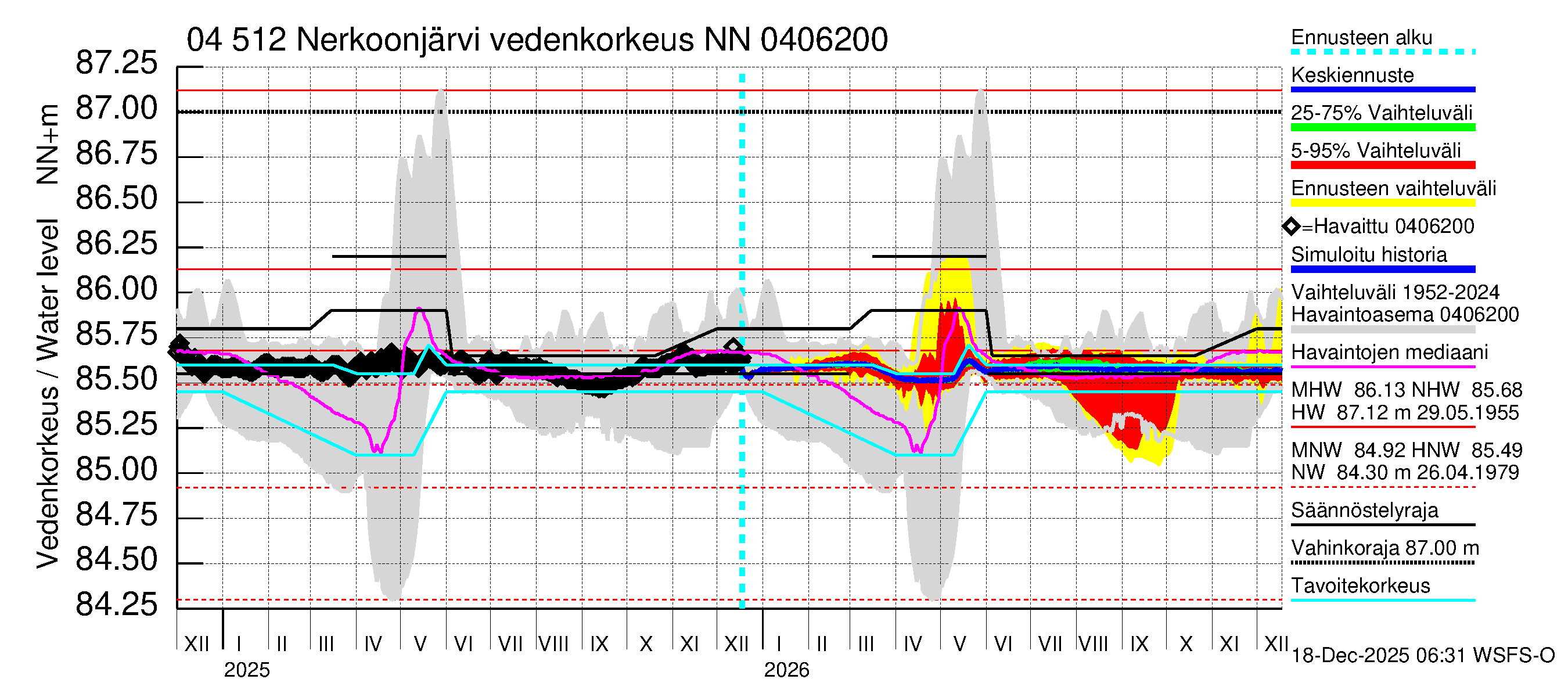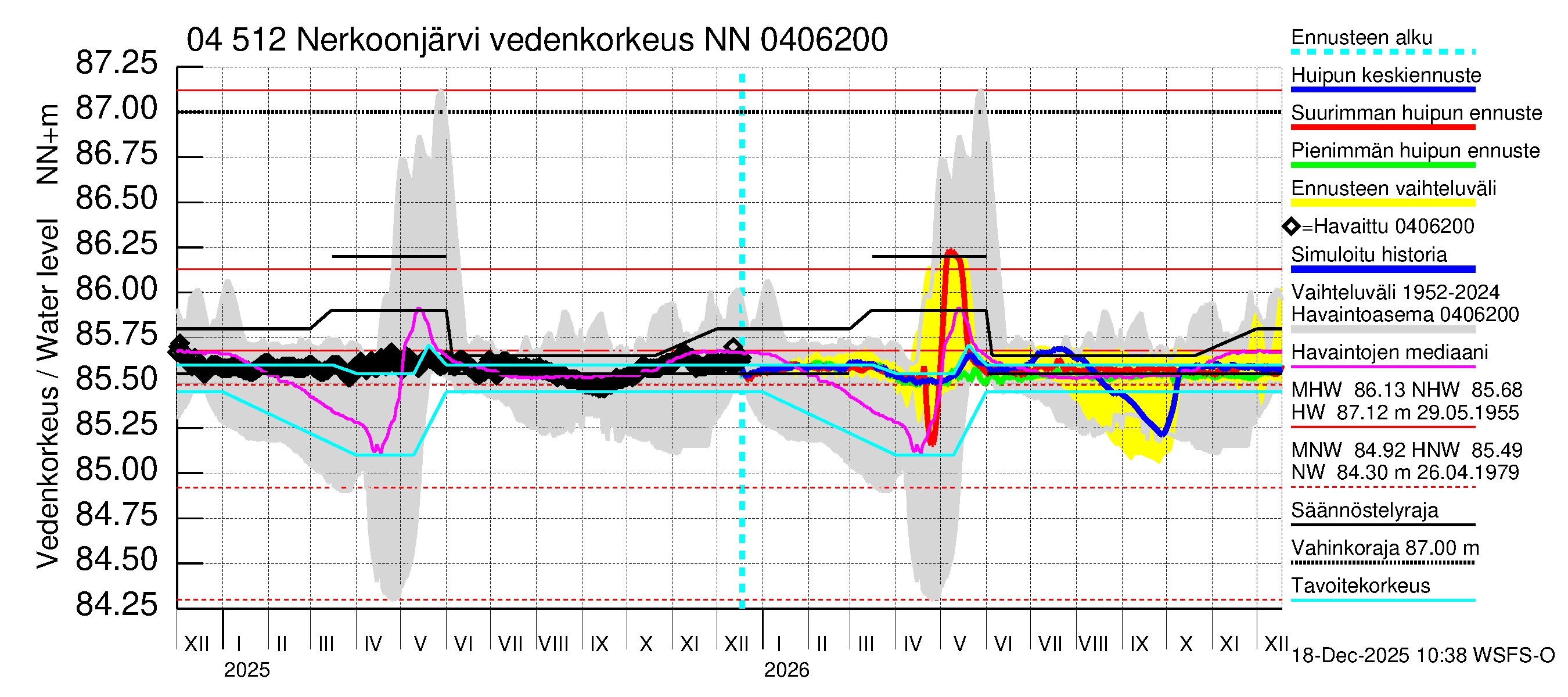Vuoksen vesistöalue - Nerkoonjärvi: Vedenkorkeus - huippujen keski- ja ääriennusteet