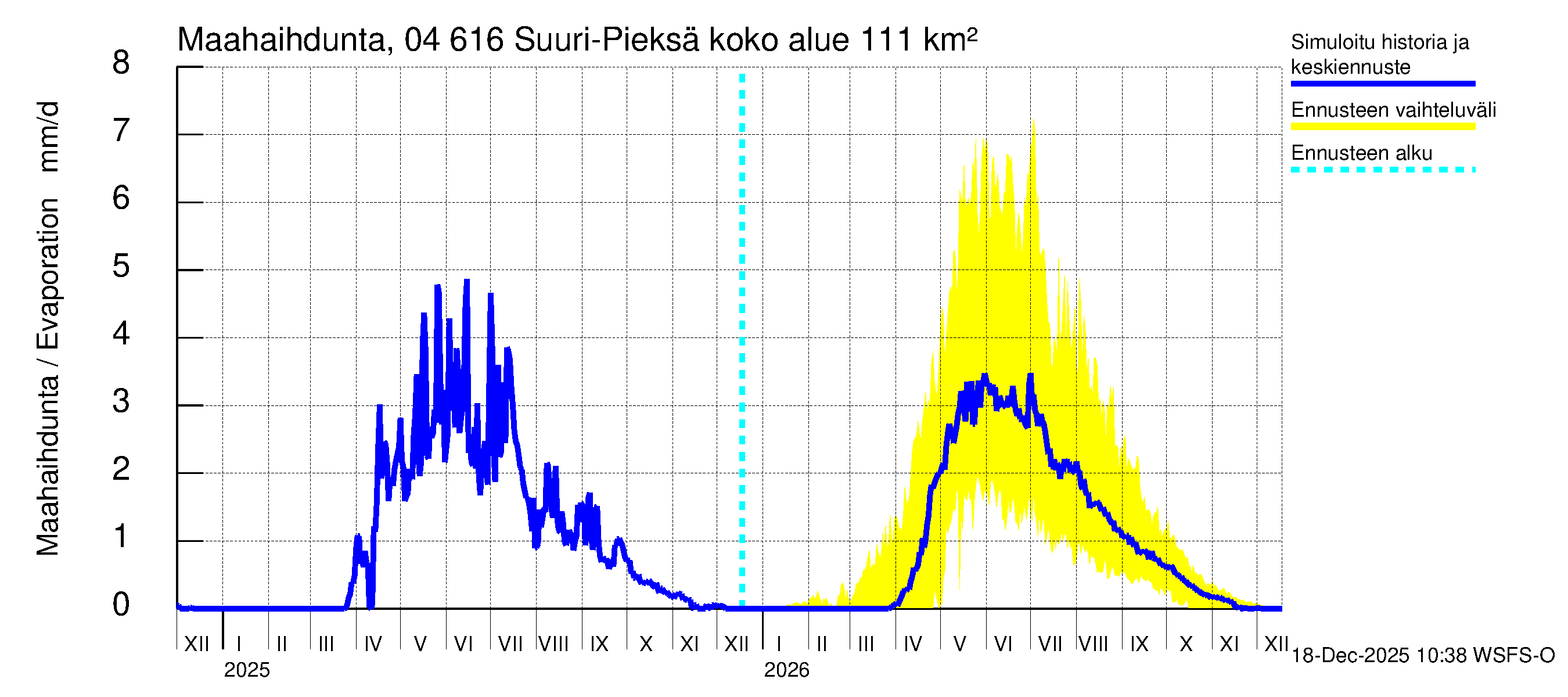Vuoksen vesistöalue - Suuri-Pieksä: Haihdunta maa-alueelta - summa