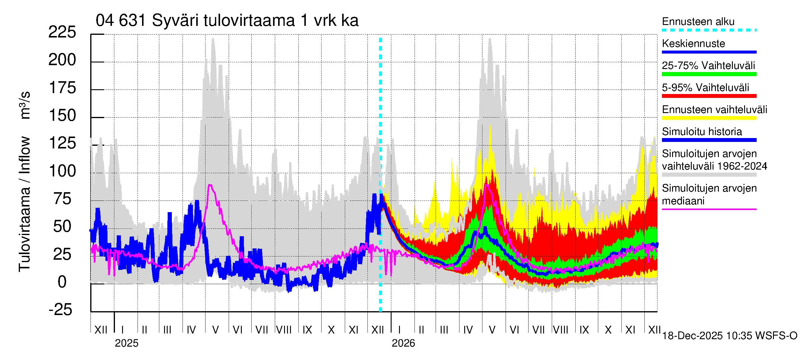Vuoksen vesistöalue - Syväri: Tulovirtaama (usean vuorokauden liukuva keskiarvo) - jakaumaennuste