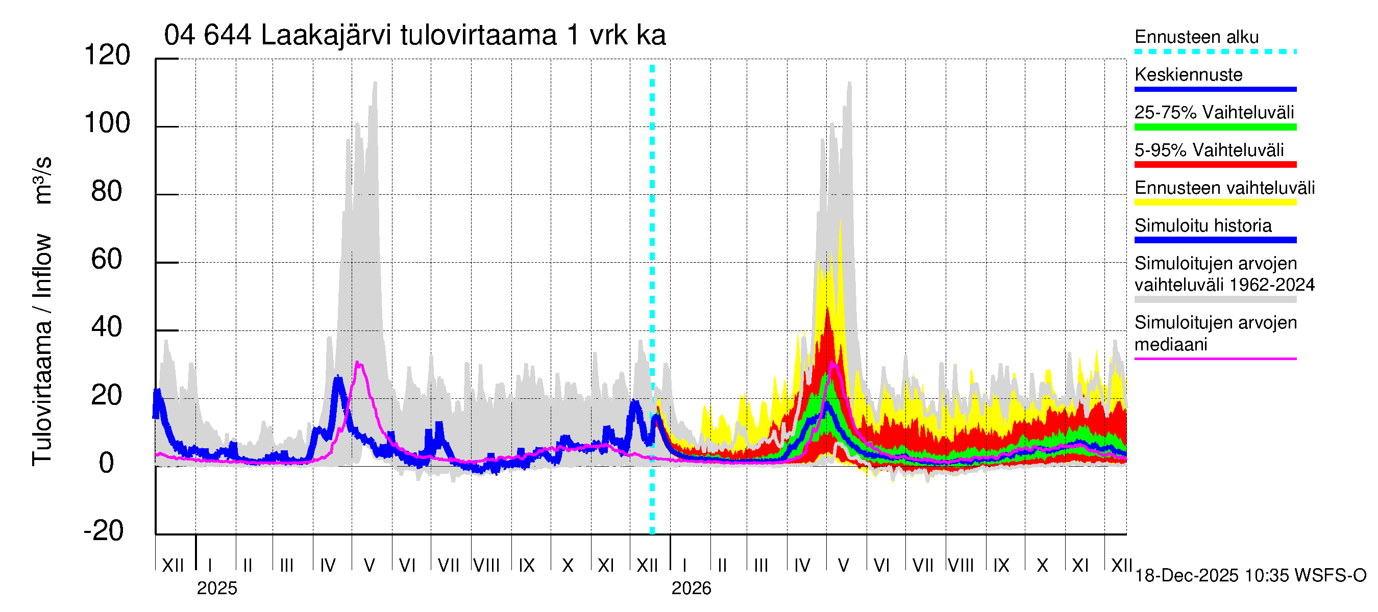 Vuoksen vesistöalue - Laakajärvi: Tulovirtaama (usean vuorokauden liukuva keskiarvo) - jakaumaennuste