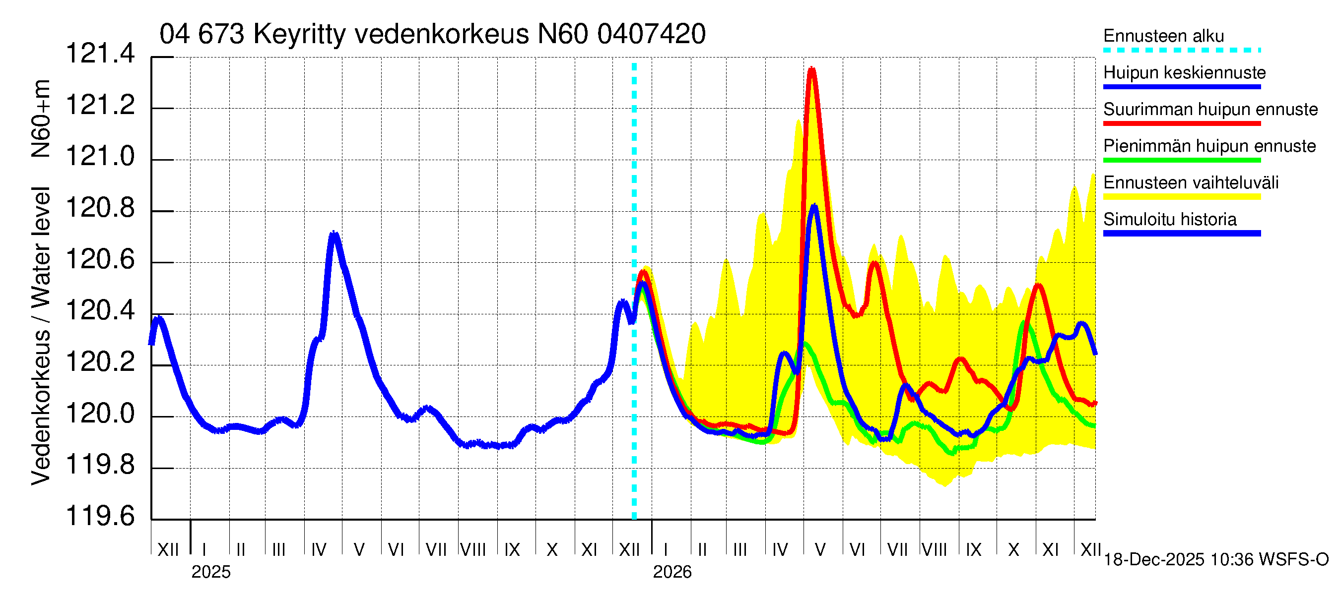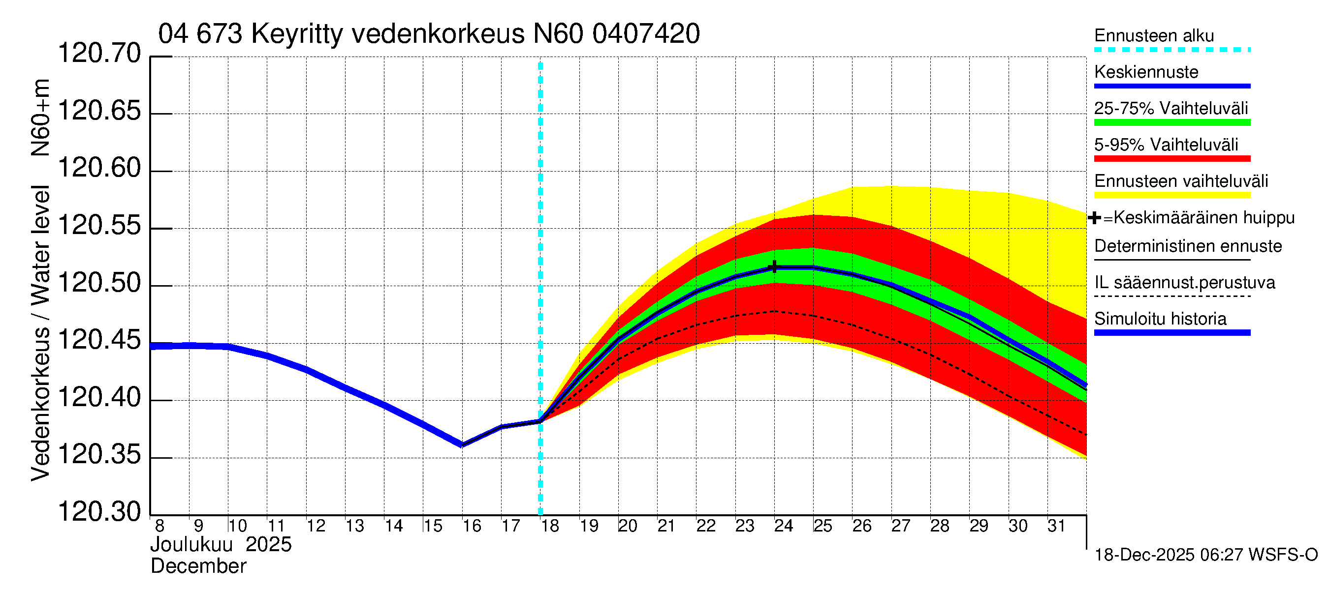 Vuoksen vesistöalue - Keyritty: Vedenkorkeus - huippujen keski- ja ääriennusteet