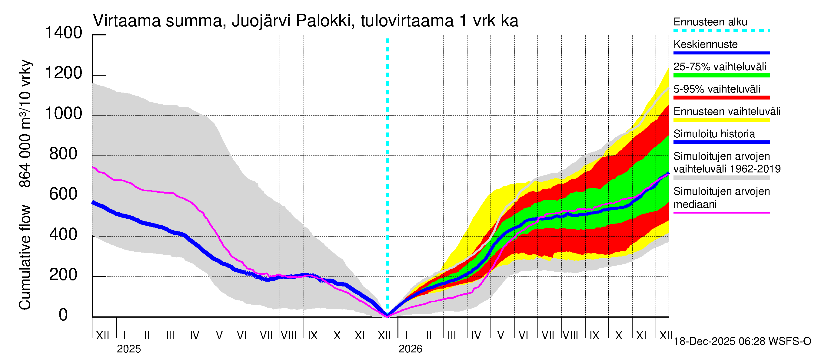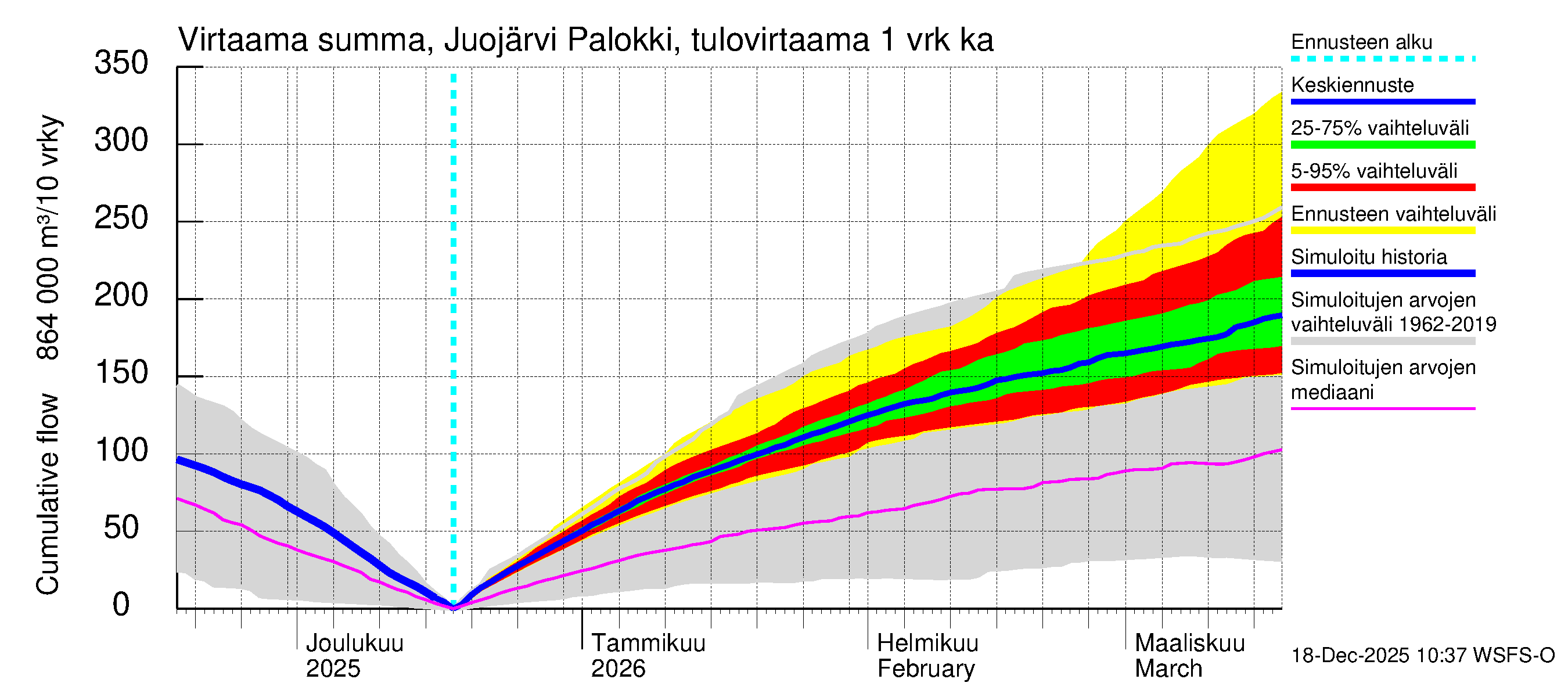 Vuoksen vesistöalue - Juojärvi: Tulovirtaama (usean vuorokauden liukuva keskiarvo) - jakaumaennuste