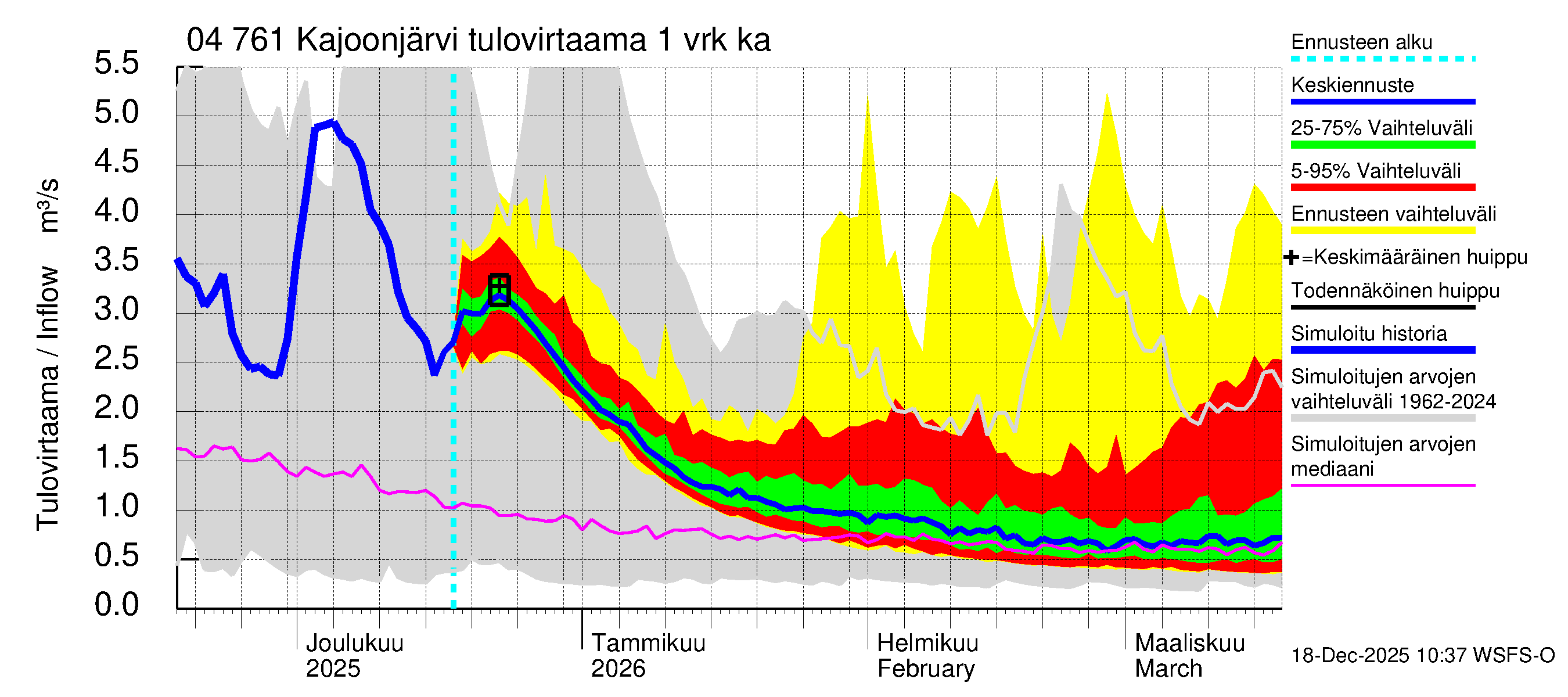 Vuoksen vesistöalue - Kajoonjärvi: Tulovirtaama (usean vuorokauden liukuva keskiarvo) - jakaumaennuste