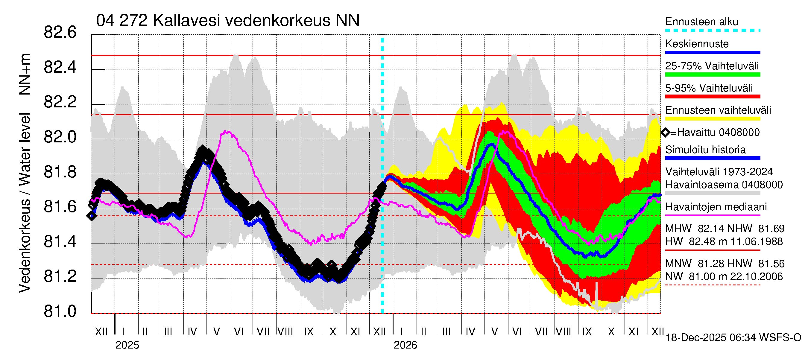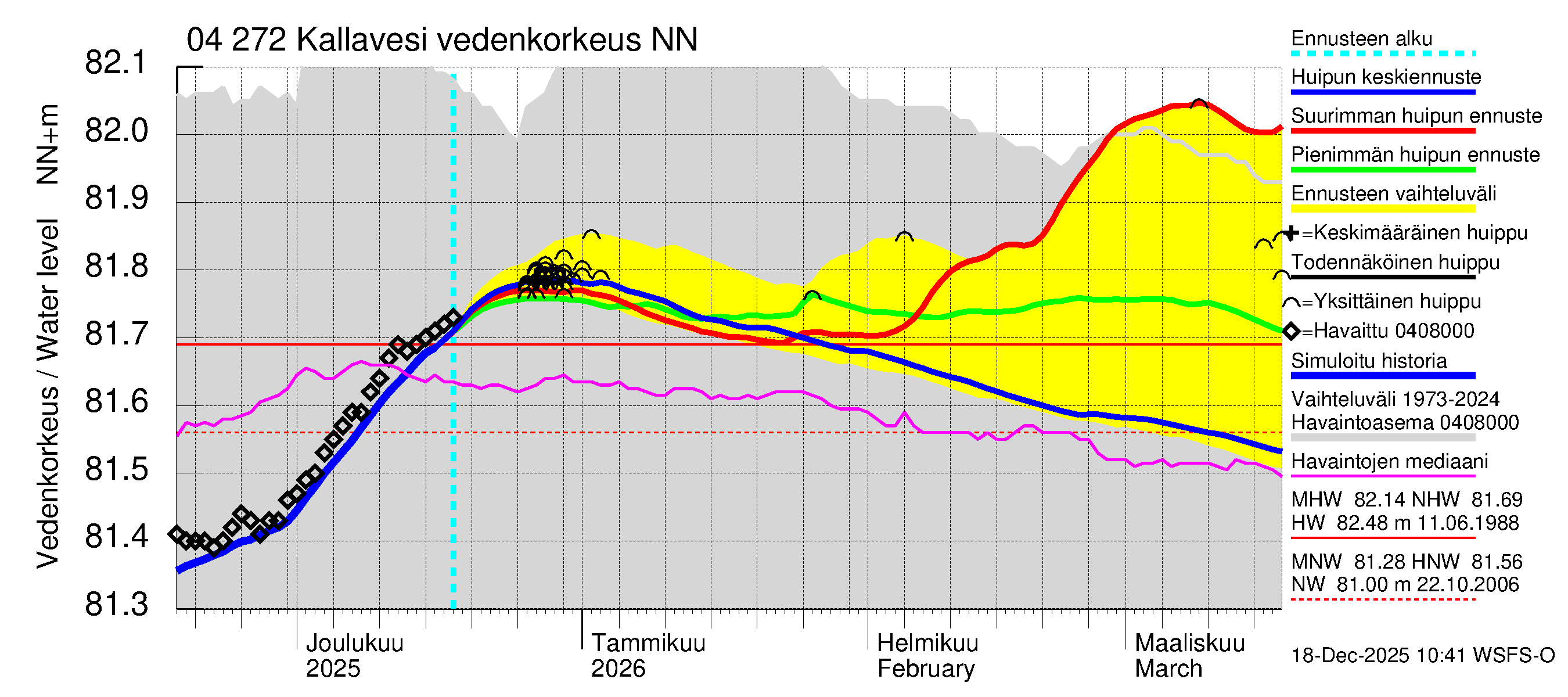 Vuoksen vesistöalue - Kallavesi Konnus: Vedenkorkeus - huippujen keski- ja ääriennusteet