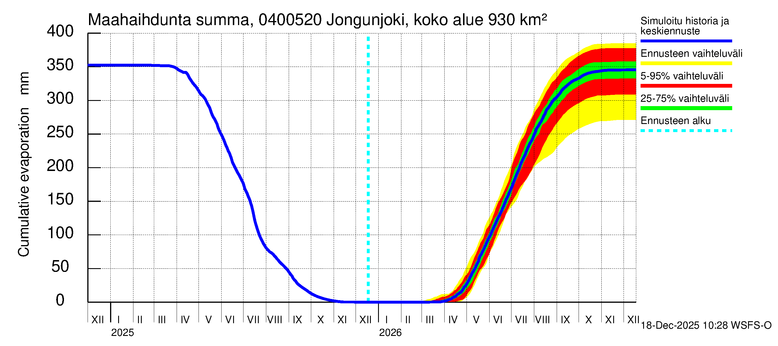 Vuoksen vesistöalue - Jongunjoki Viitakoski: Haihdunta maa-alueelta - summa
