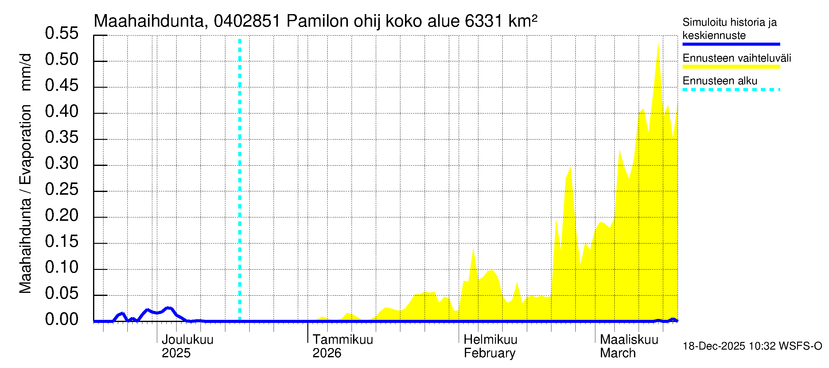 Vuoksen vesistöalue - Hiiskosken pato: Haihdunta maa-alueelta - summa