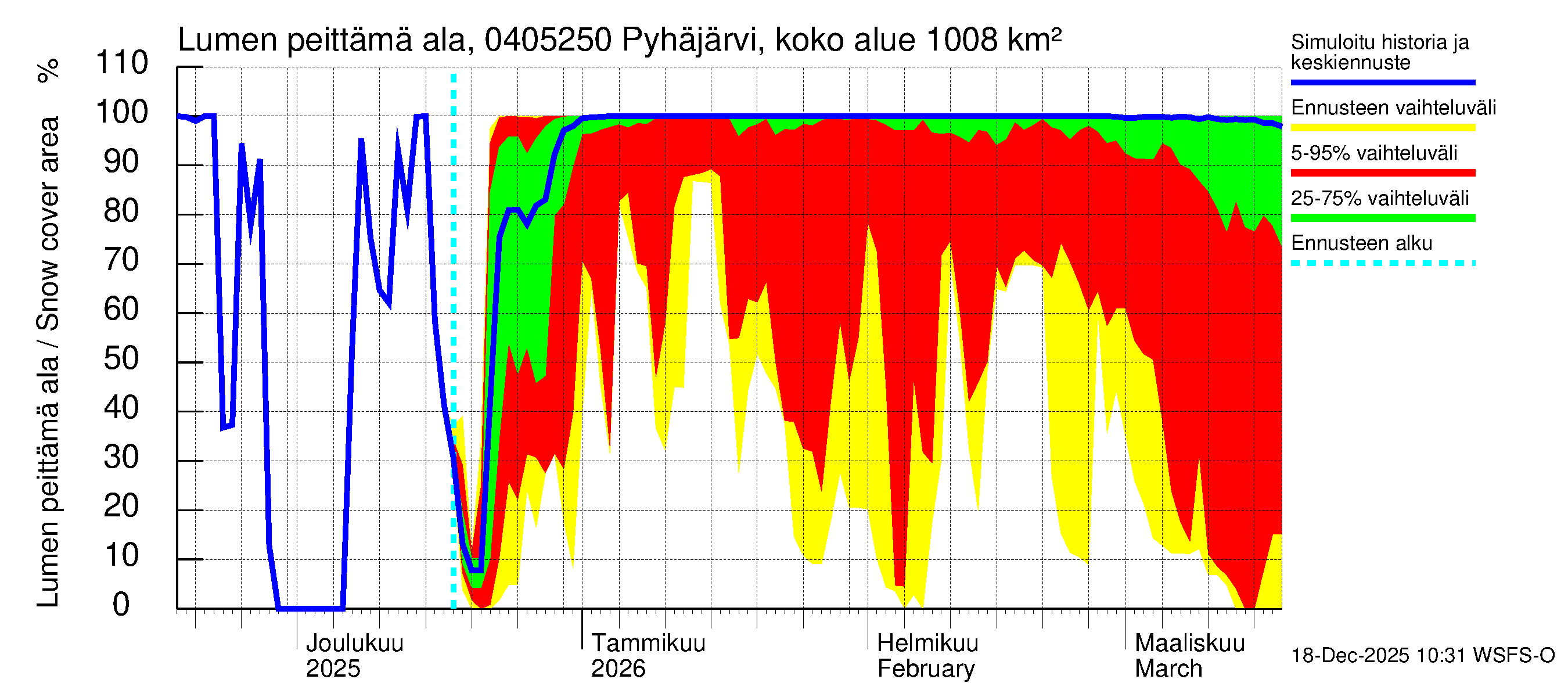 Vuoksen vesistöalue - Pyhäjärvi Puhos: Lumen peittämä ala