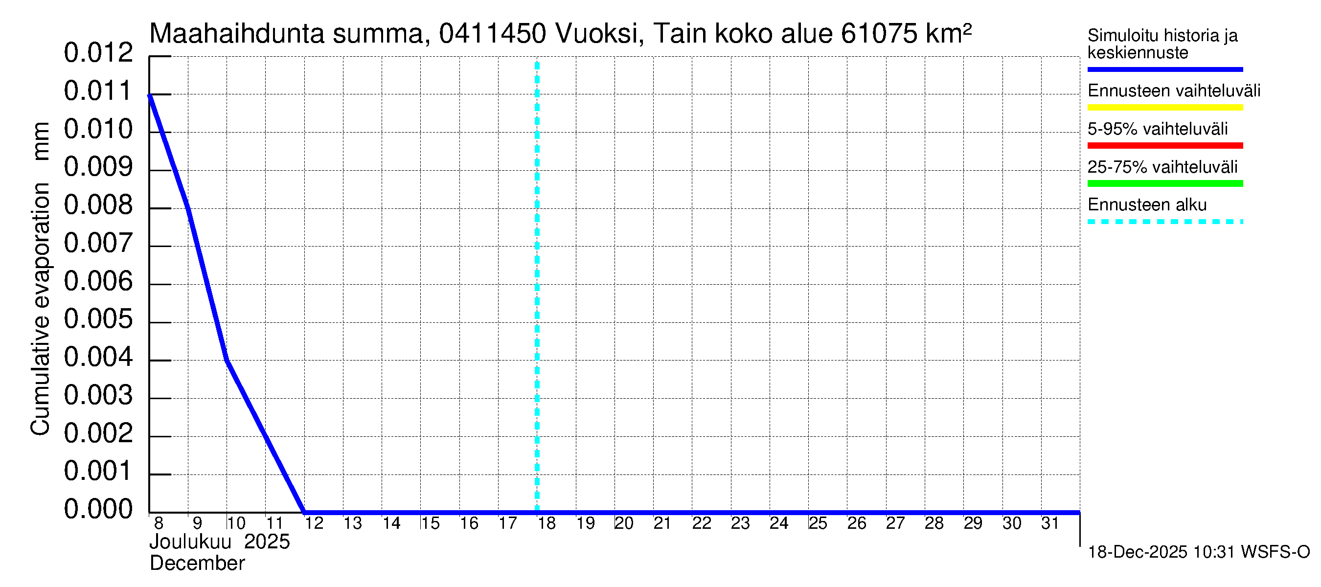 Vuoksen vesistöalue - Vuoksi Tainionkoski: Haihdunta maa-alueelta - summa