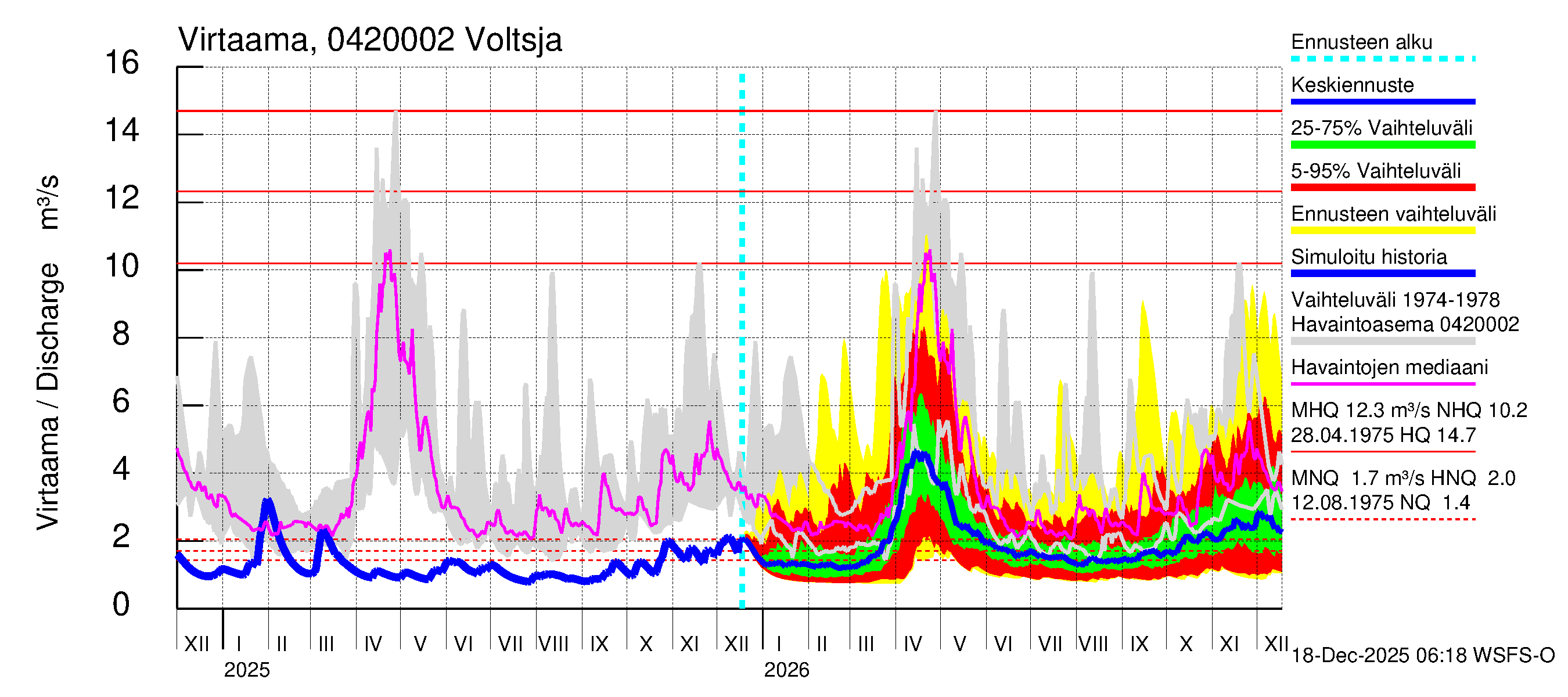 Vuoksen vesistöalue - Voltsja / Saijanjoki: Virtaama / juoksutus - huippujen keski- ja ääriennusteet