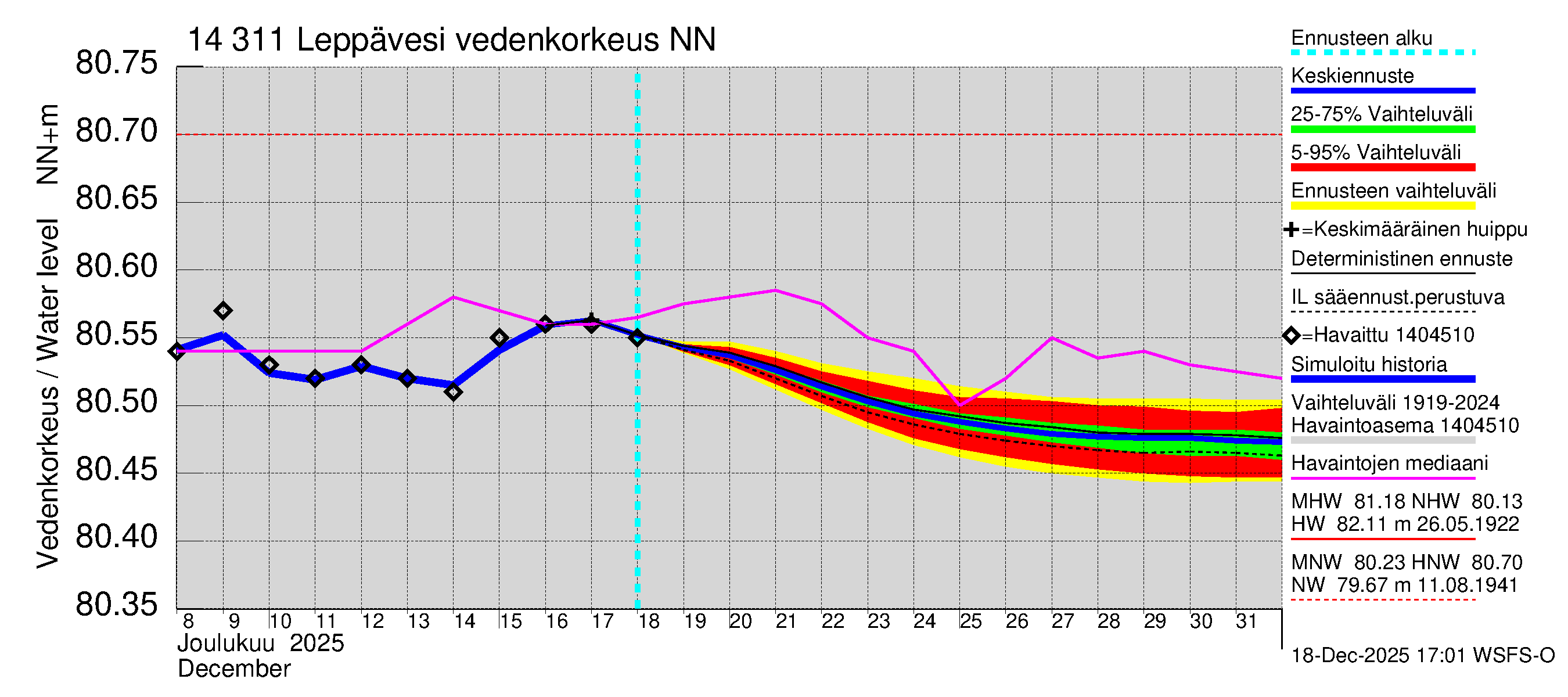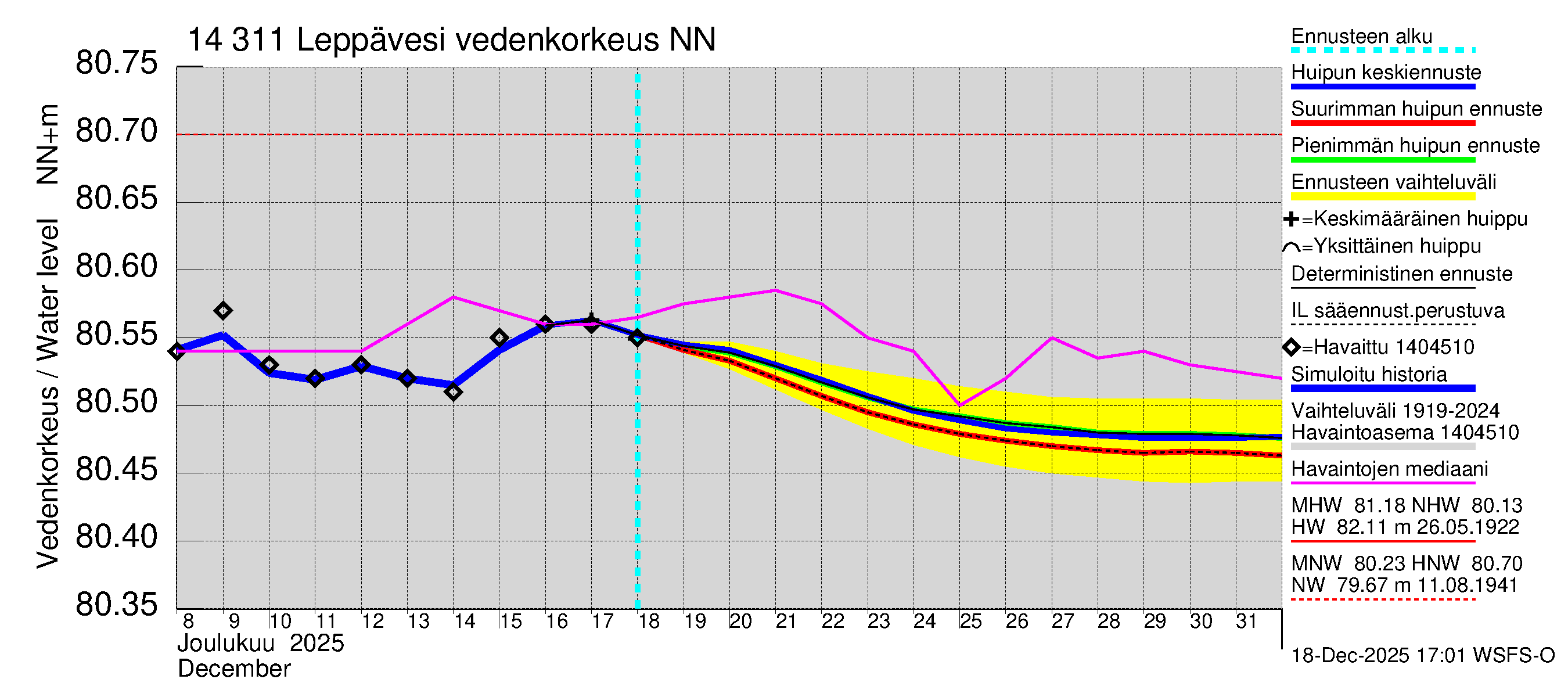 Kymijoen vesistöalue - Leppävesi: Vedenkorkeus - huippujen keski- ja ääriennusteet