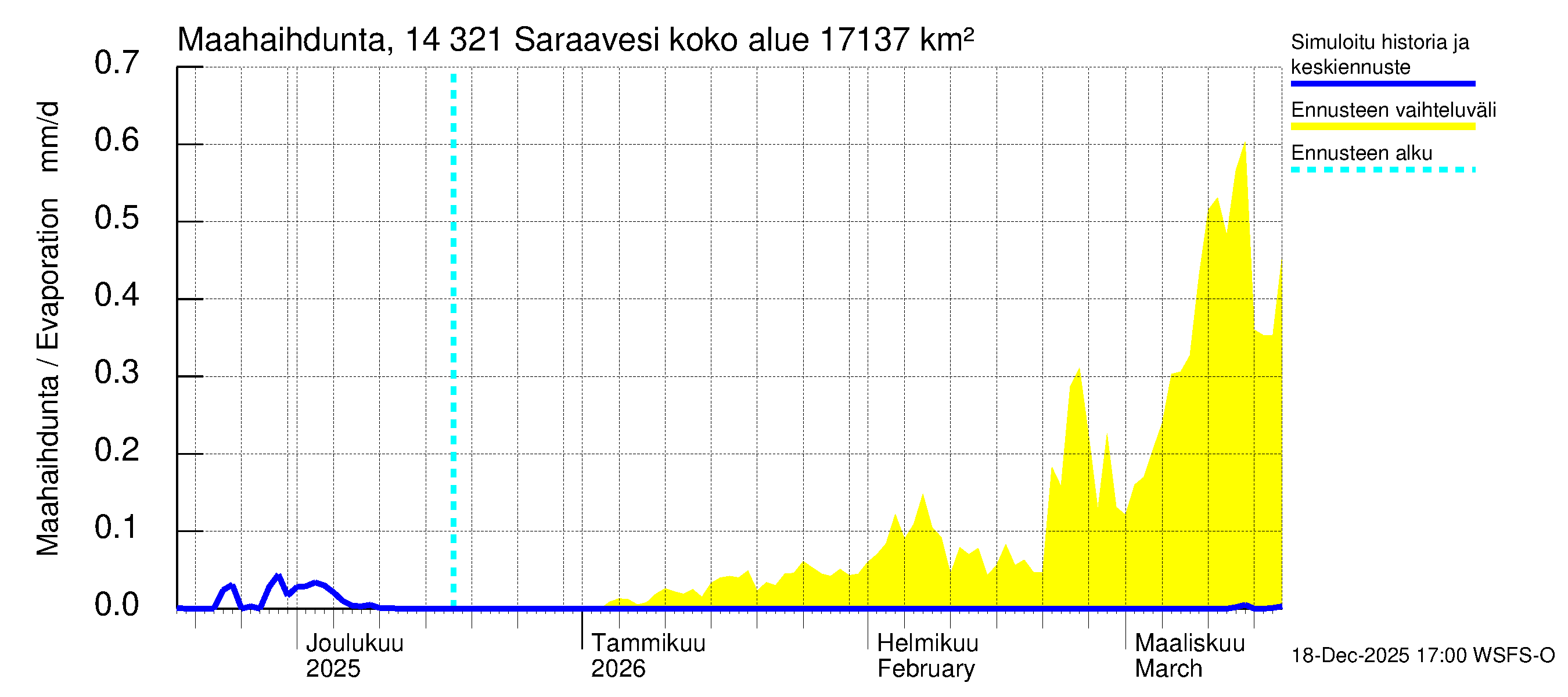 Kymijoen vesistöalue - Saraavesi: Haihdunta maa-alueelta - summa