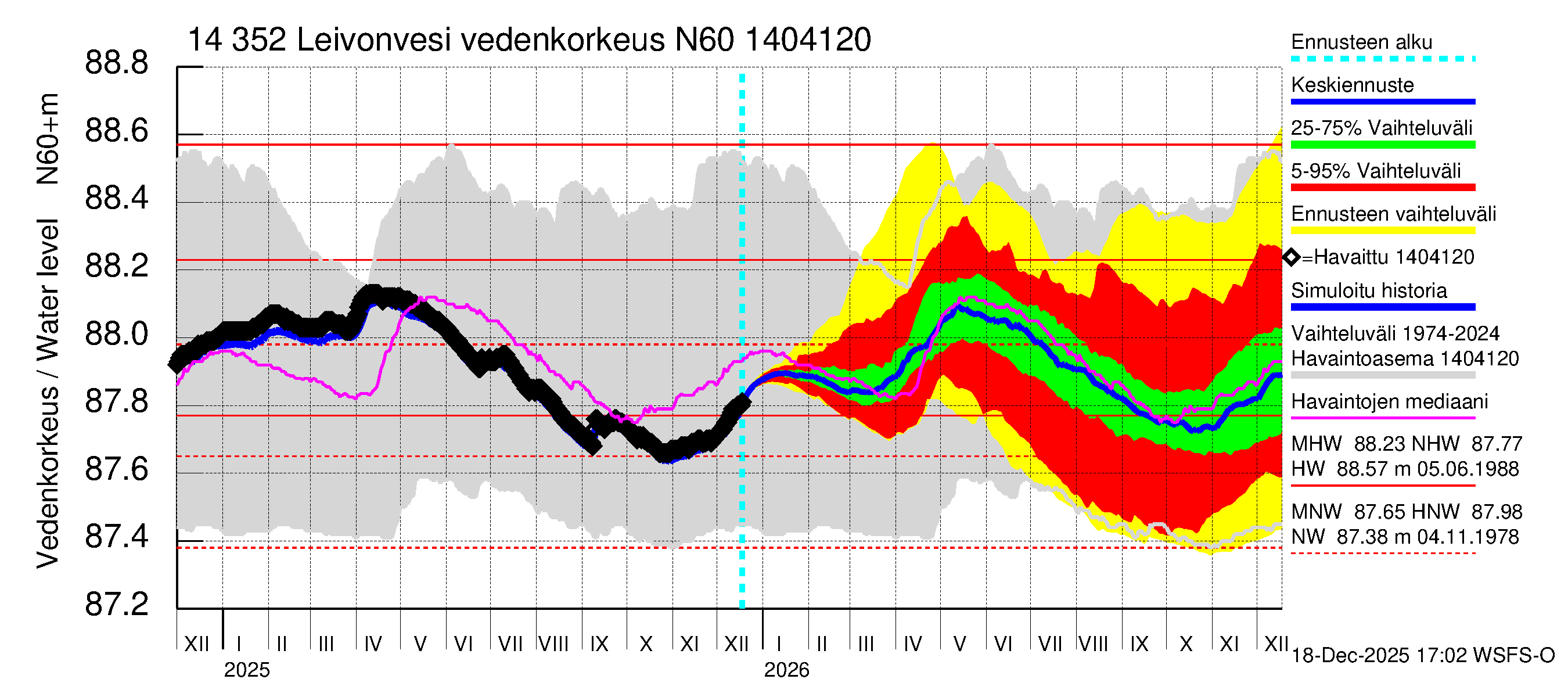 Kymijoen vesistöalue - Leivonvesi: Vedenkorkeus - huippujen keski- ja ääriennusteet