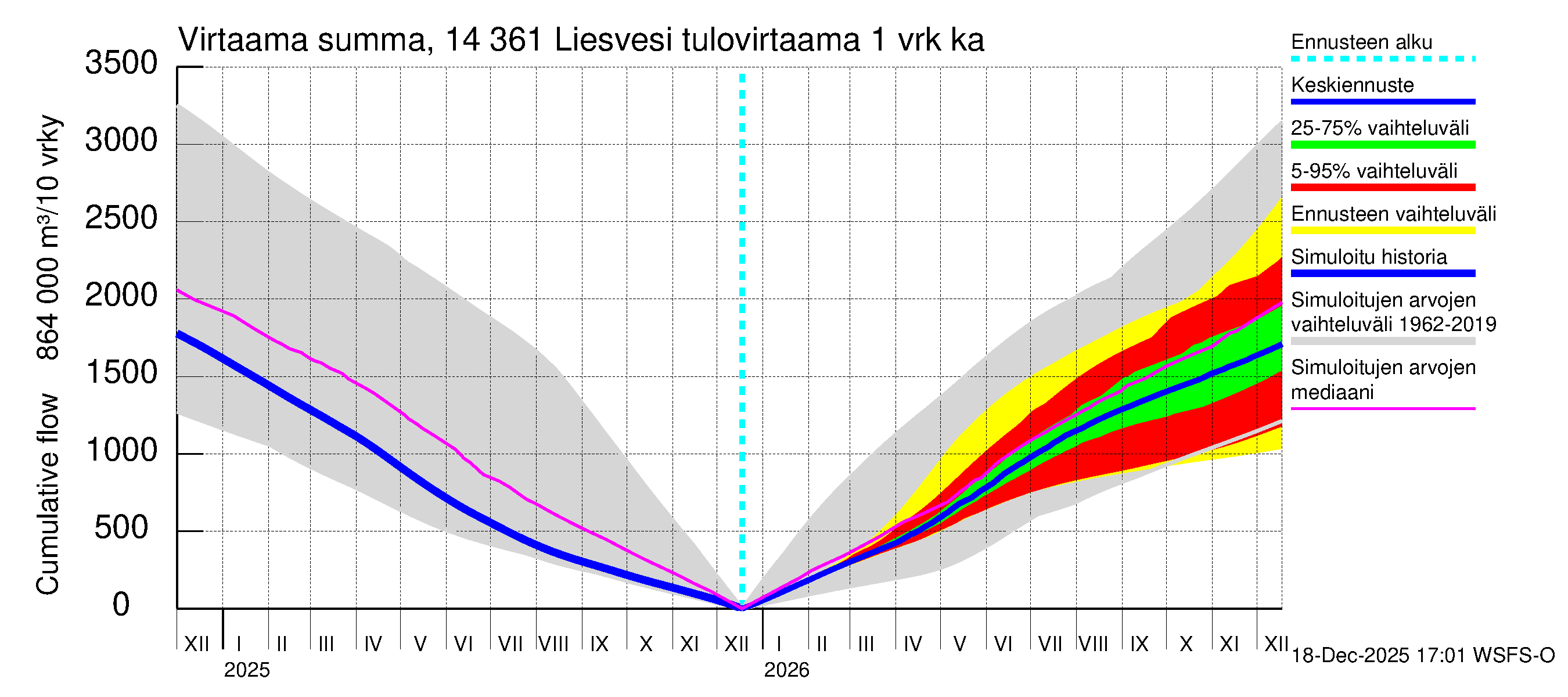 Kymijoen vesistöalue - Liesvesi: Tulovirtaama (usean vuorokauden liukuva keskiarvo) - jakaumaennuste