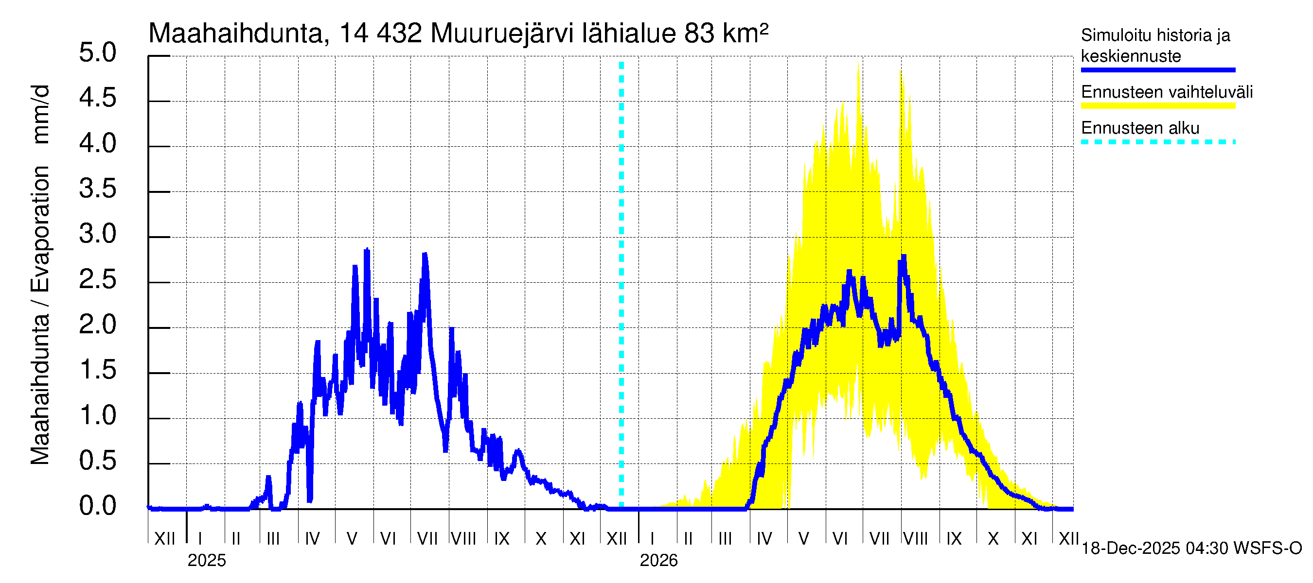 Kymijoen vesistöalue - Muuruejärvi: Haihdunta maa-alueelta - summa