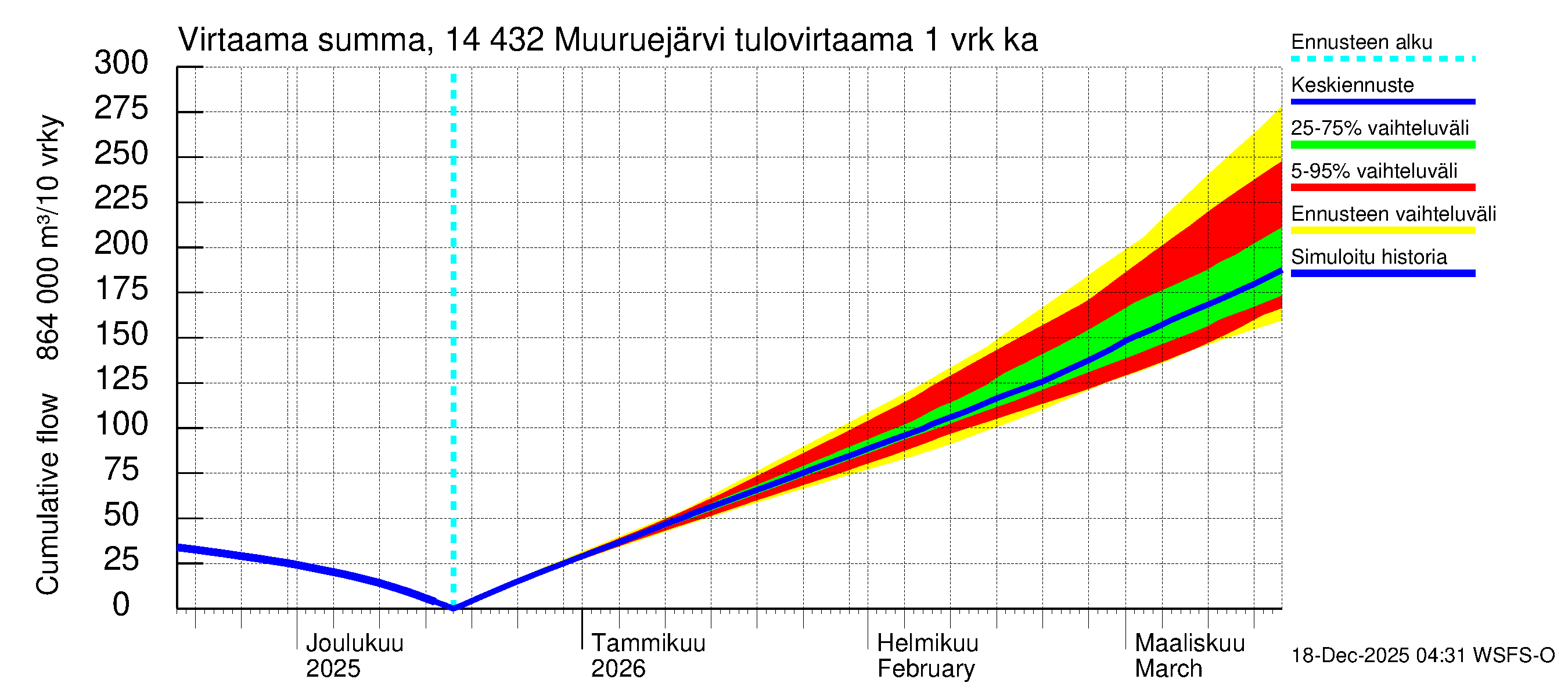 Kymijoen vesistöalue - Muuruejärvi: Tulovirtaama (usean vuorokauden liukuva keskiarvo) - jakaumaennuste