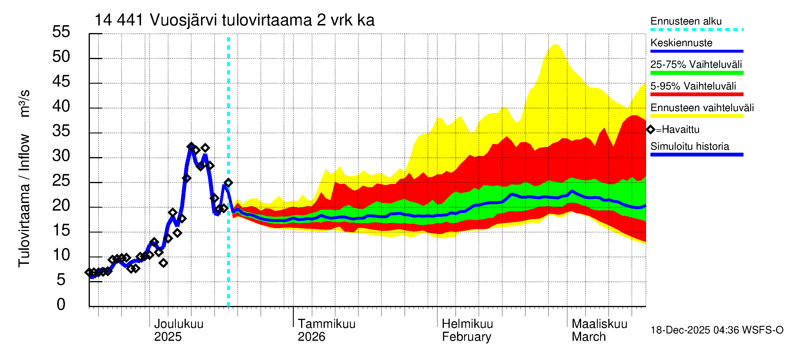 Kymijoen vesistöalue - Vuosjärvi: Tulovirtaama (usean vuorokauden liukuva keskiarvo) - jakaumaennuste
