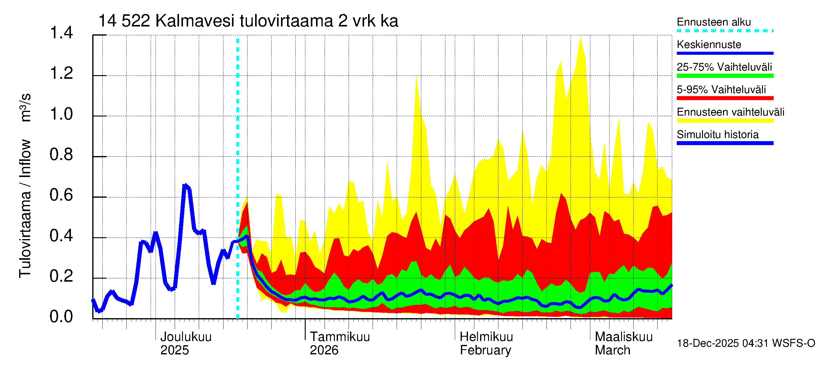 Kymijoen vesistöalue - Kalmavesi: Tulovirtaama (usean vuorokauden liukuva keskiarvo) - jakaumaennuste
