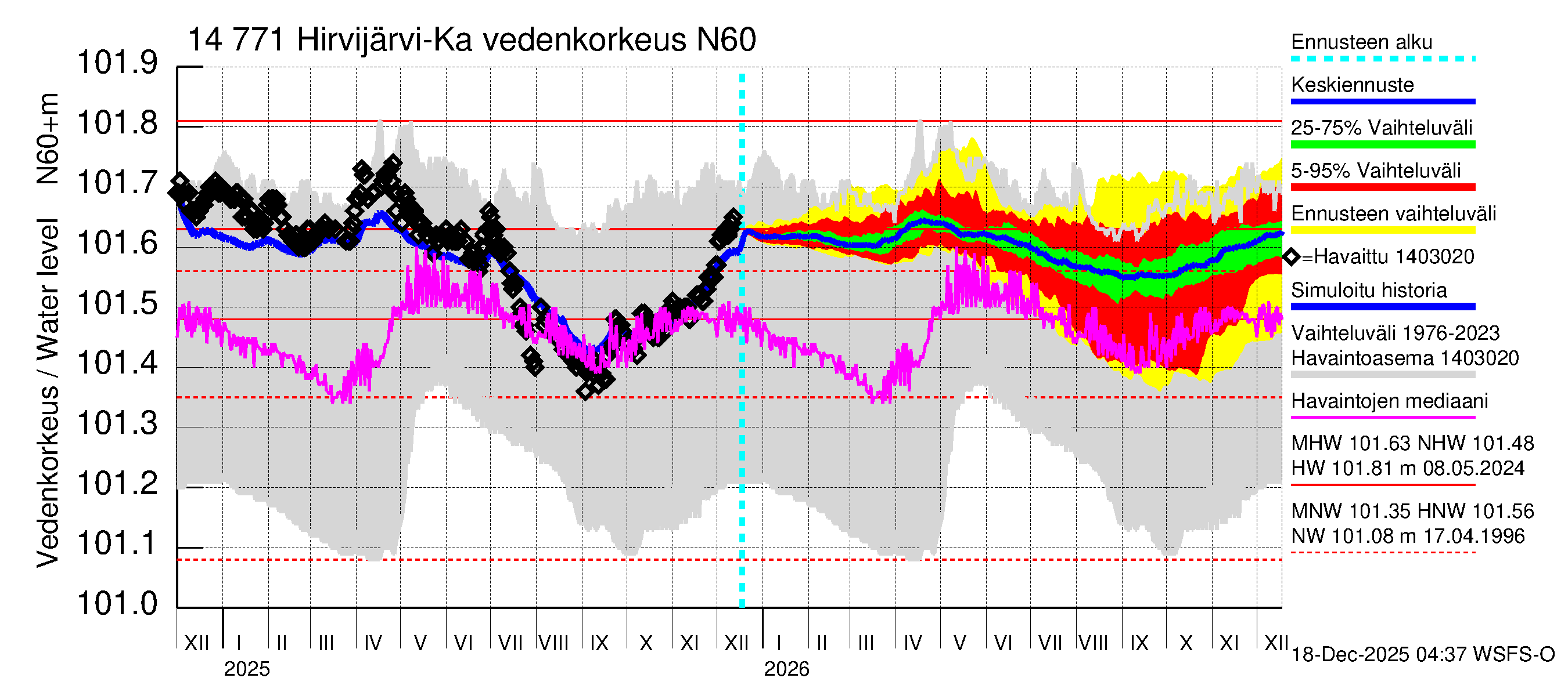 Kymijoen vesistöalue - Hirvijärvi-Kalliovesi: Vedenkorkeus - huippujen keski- ja ääriennusteet