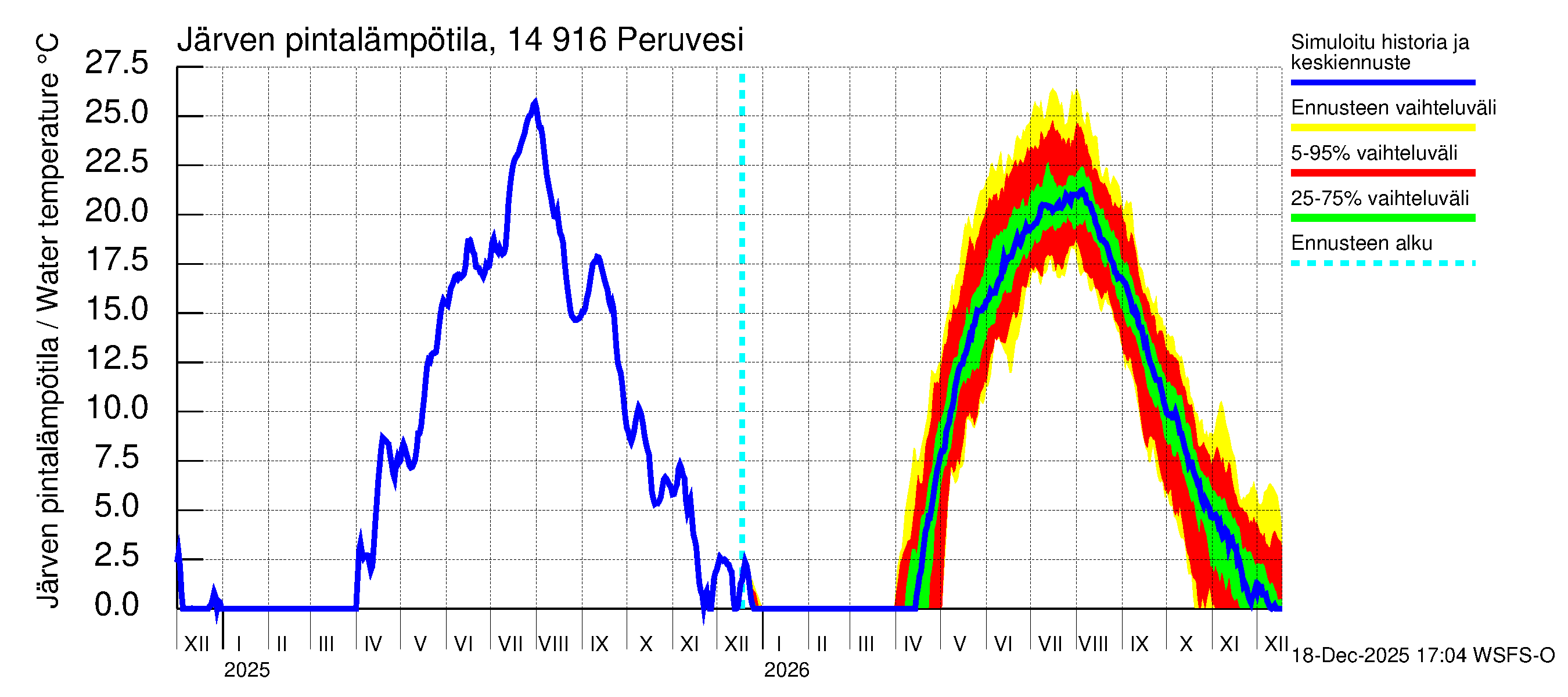 Kymijoen vesistöalue - Peruvesi: Järven pintalämpötila