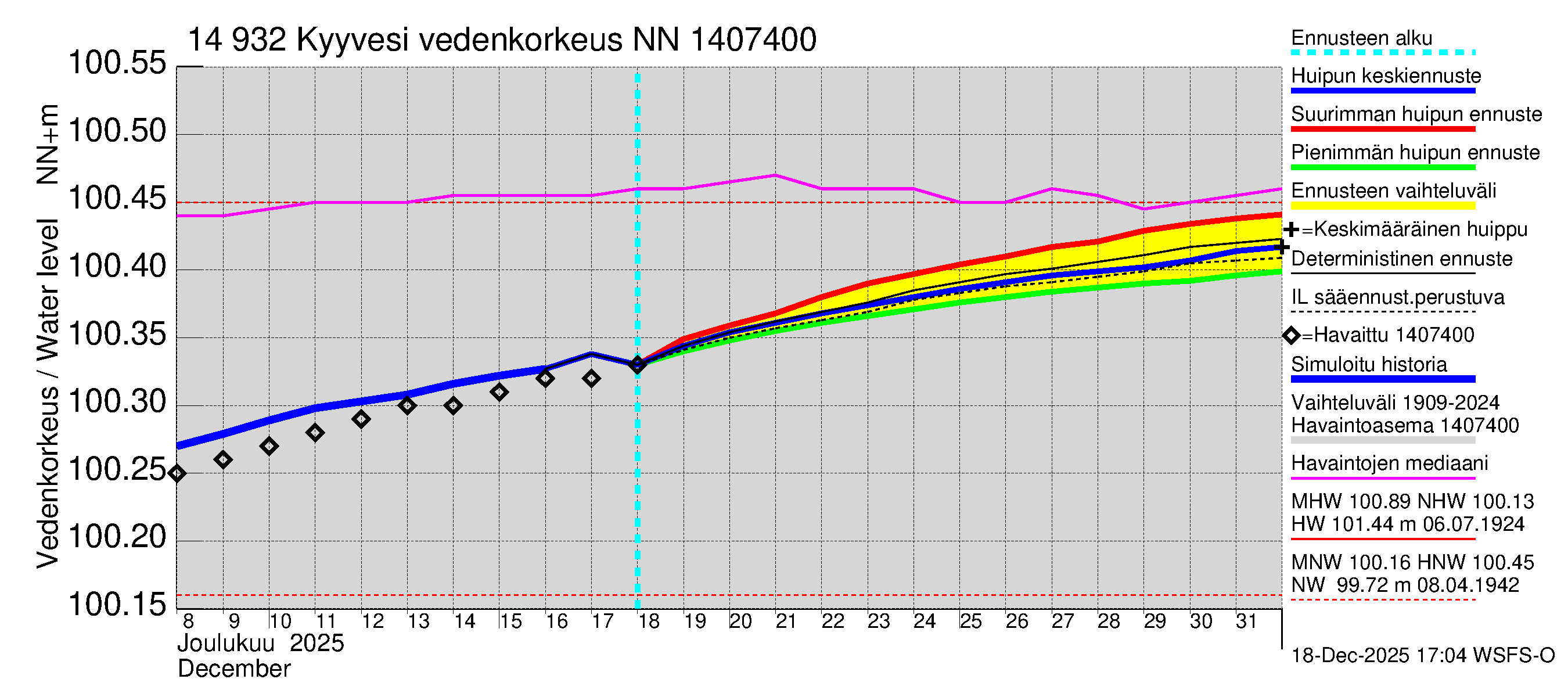 Kymijoen vesistöalue - Kyyvesi: Vedenkorkeus - huippujen keski- ja ääriennusteet