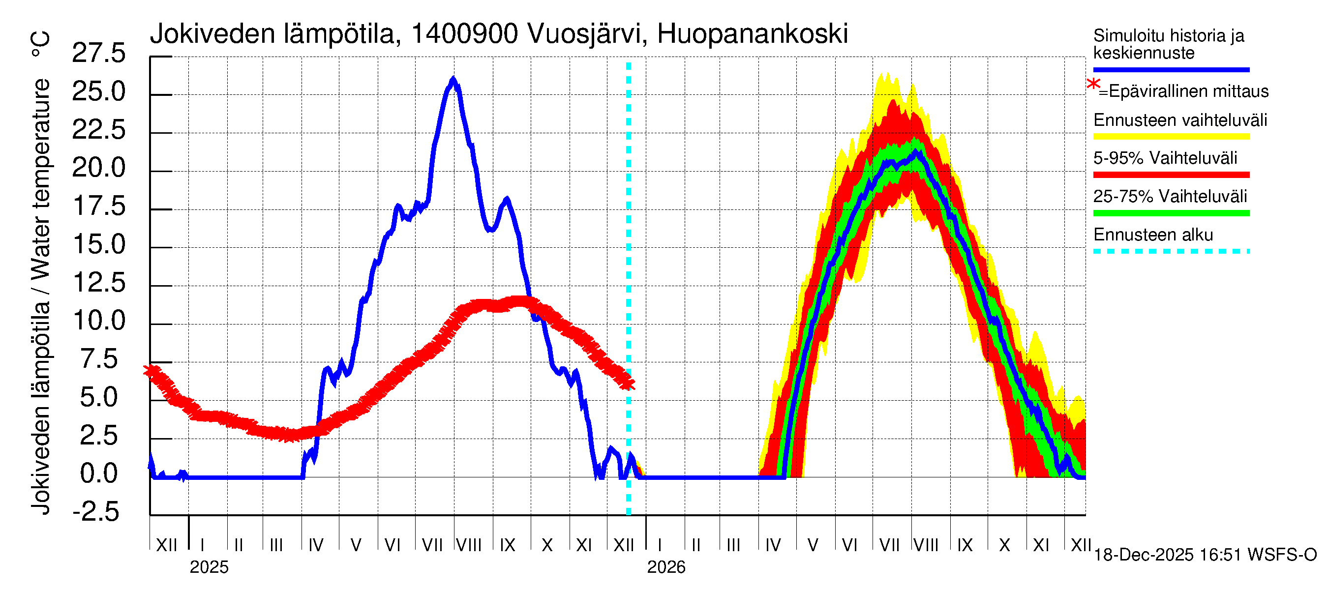Kymijoen vesistöalue - Huopanankoski: Jokiveden lämpötila