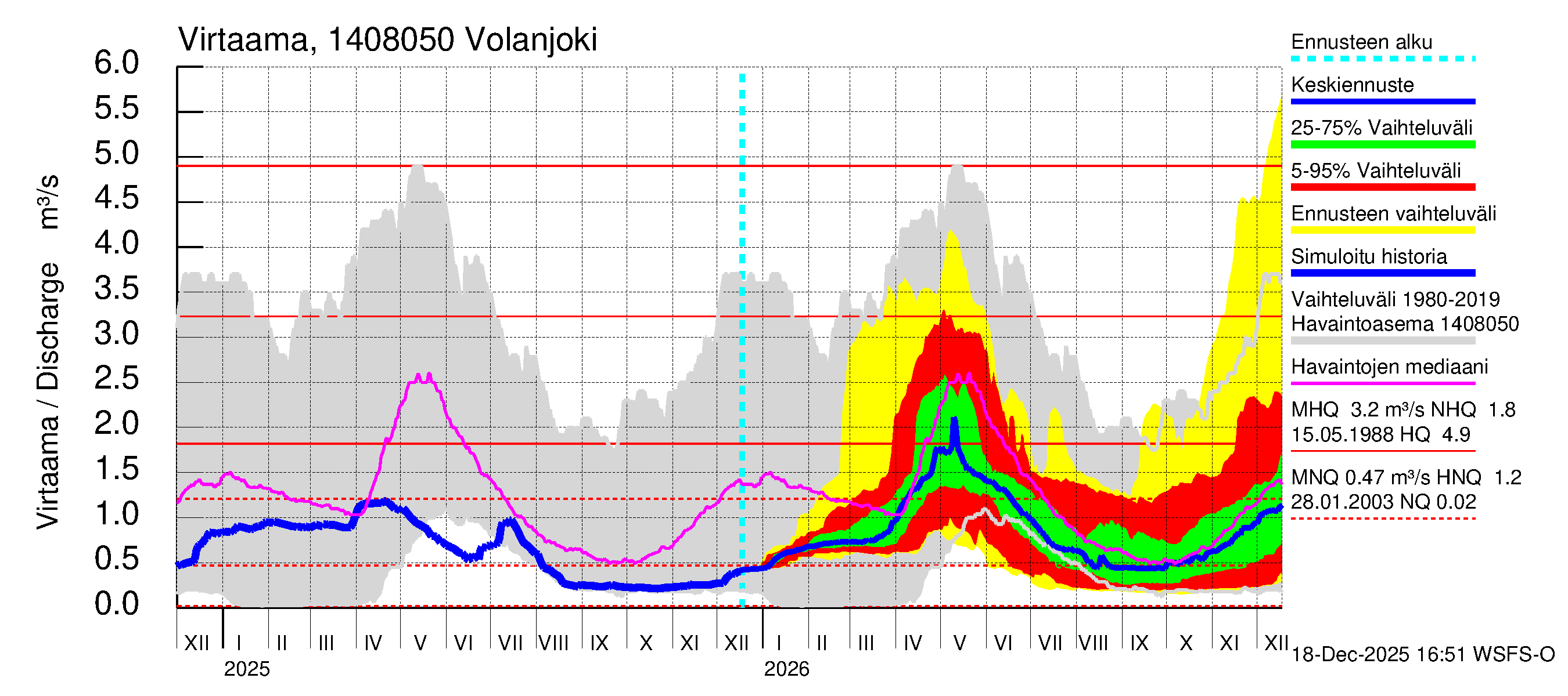 Kymijoen vesistöalue - Volanjoki: Virtaama / juoksutus - jakaumaennuste