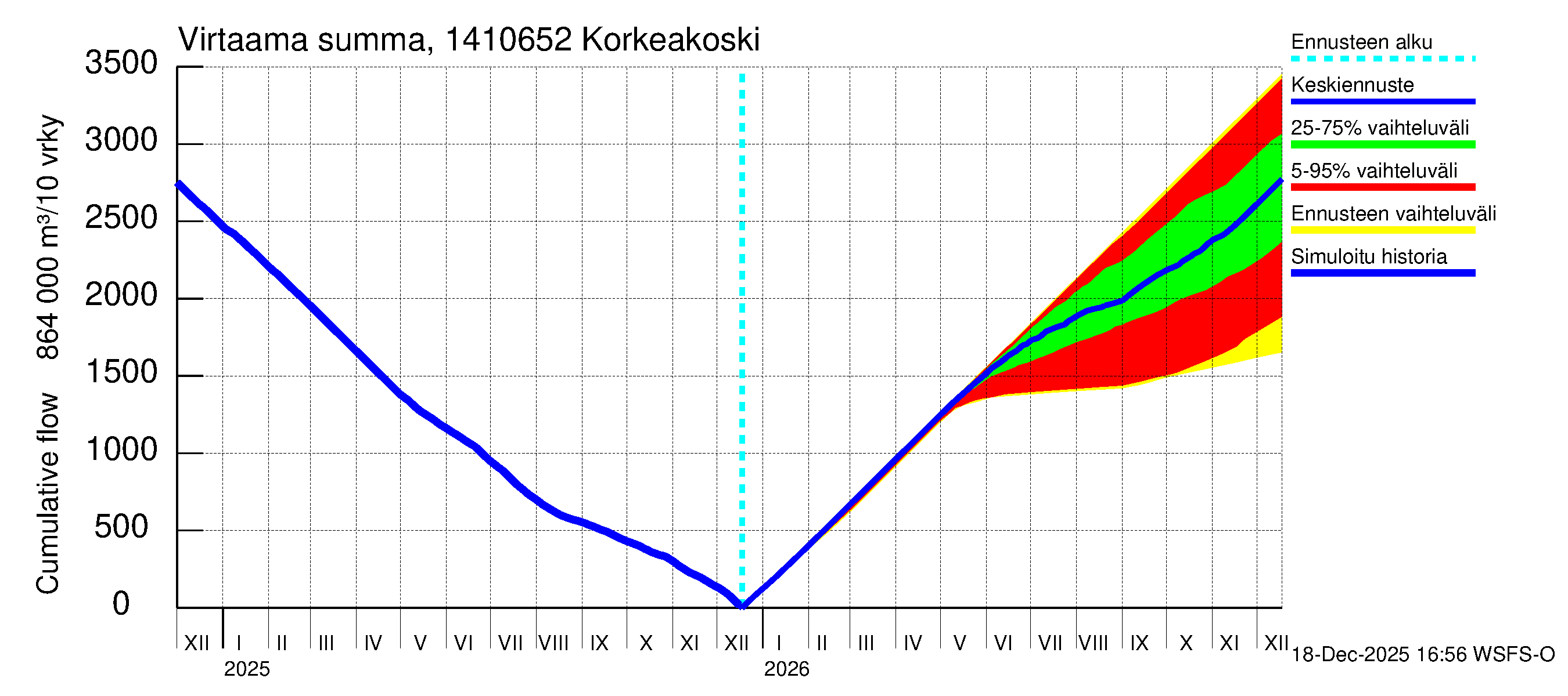 Kymijoen vesistöalue - Korkeakoski: Virtaama / juoksutus - jakaumaennuste