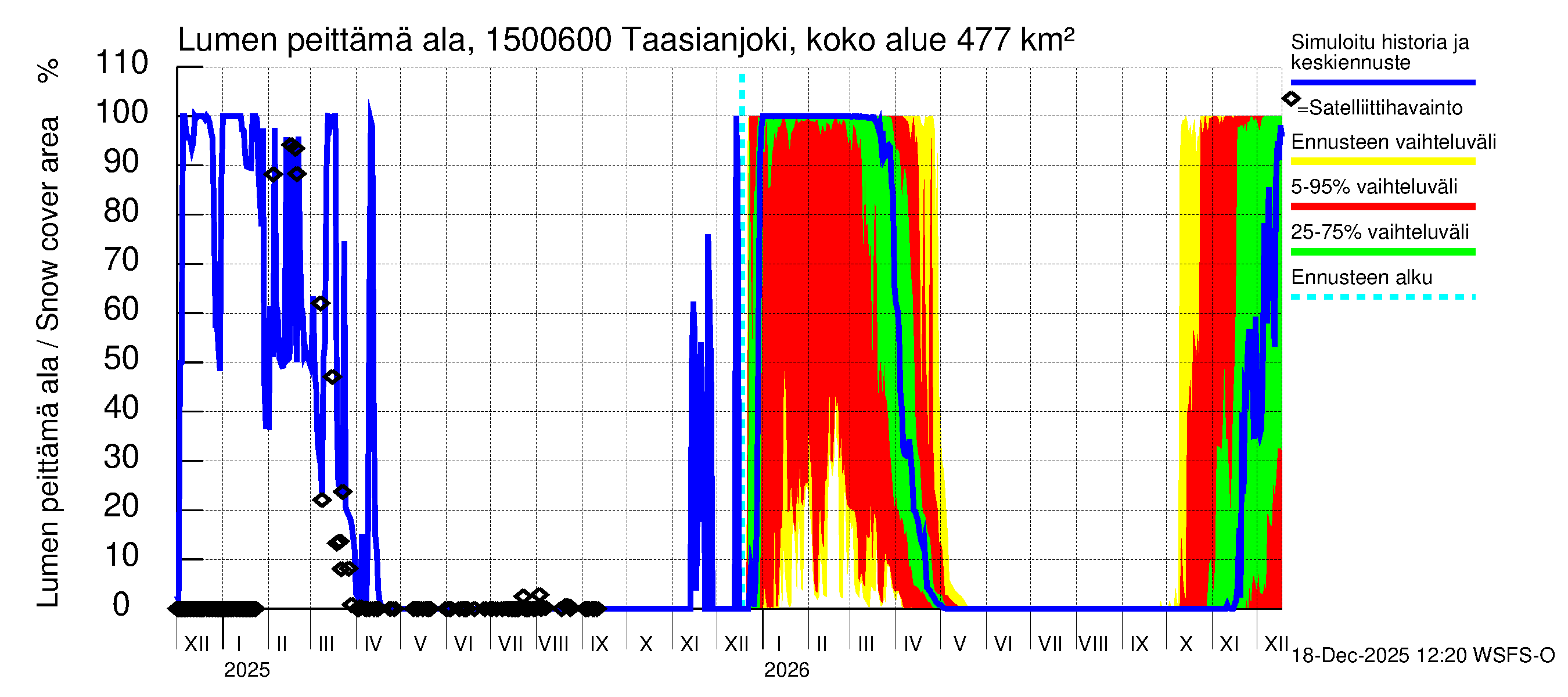 Taasianjoen vesistöalue - Holmankoski: Lumen peittämä ala