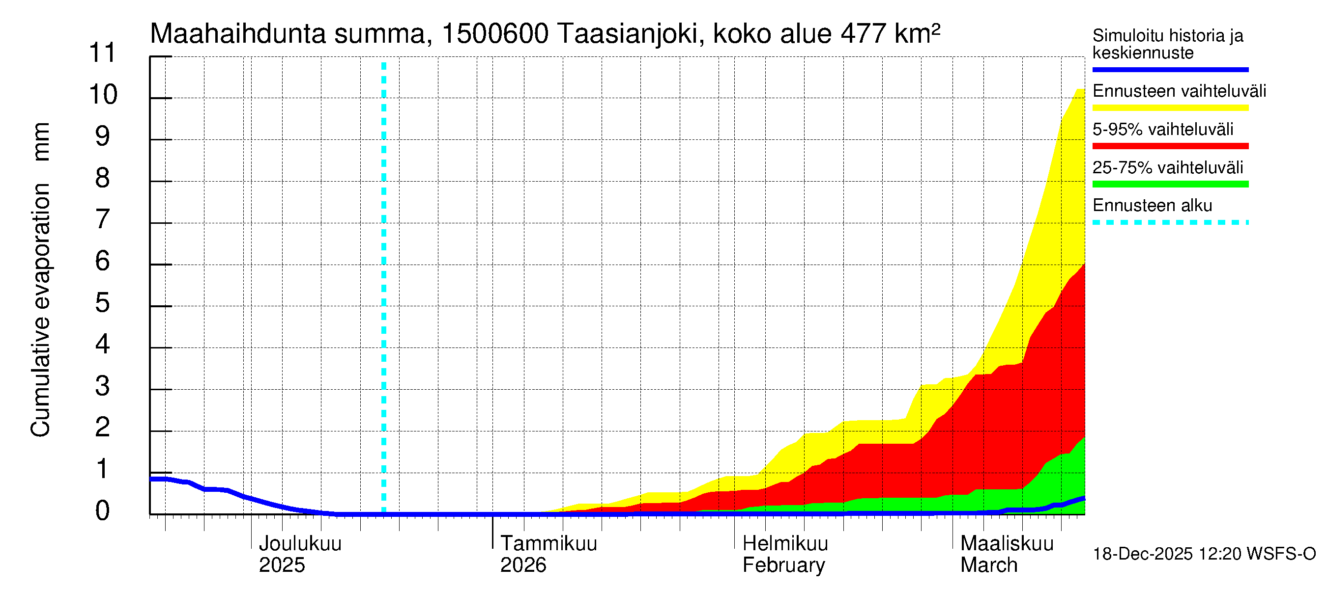 Taasianjoen vesistöalue - Holmankoski: Haihdunta maa-alueelta - summa