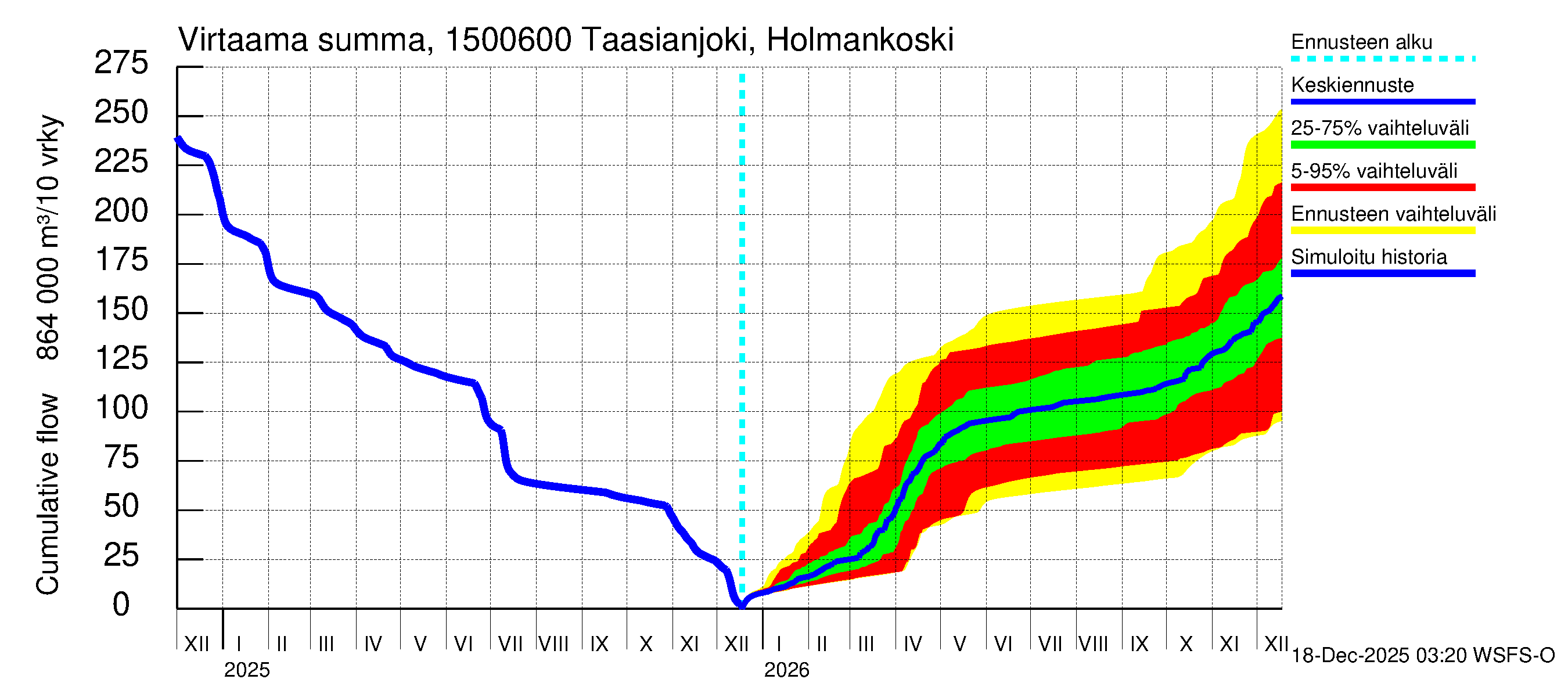 Taasianjoen vesistöalue - Holmankoski: Virtaama / juoksutus - jakaumaennuste