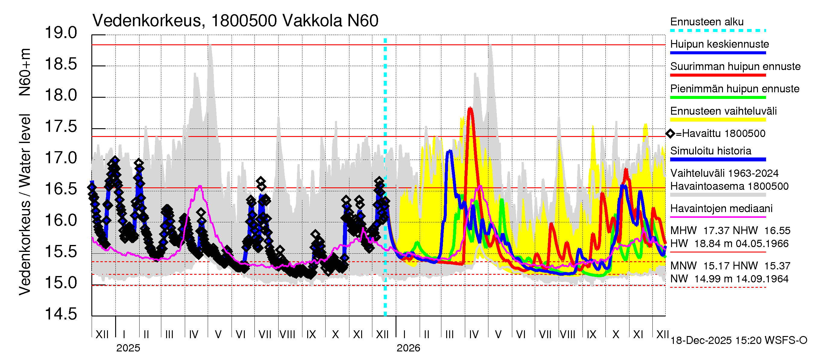 Porvoonjoen vesistöalue - Vakkola: Vedenkorkeus - huippujen keski- ja ääriennusteet