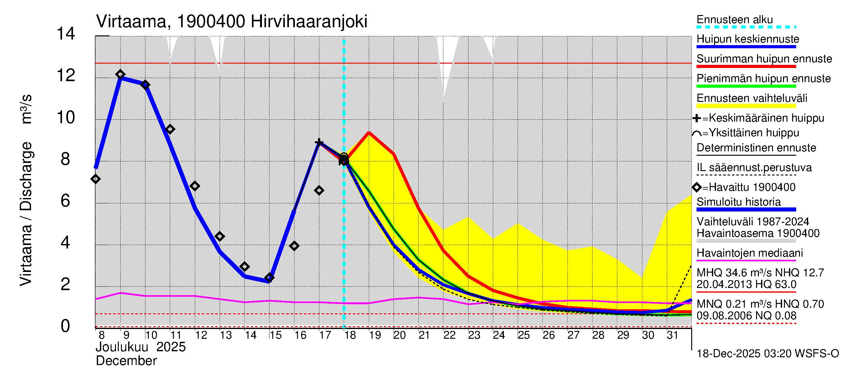 Asiantuntijan työpöytä > Mustijoen vesistöalue > Hirvihaaranjoki > Koko valuma-alue / Lähivaluma-alue Ennustekuvien tulkinta