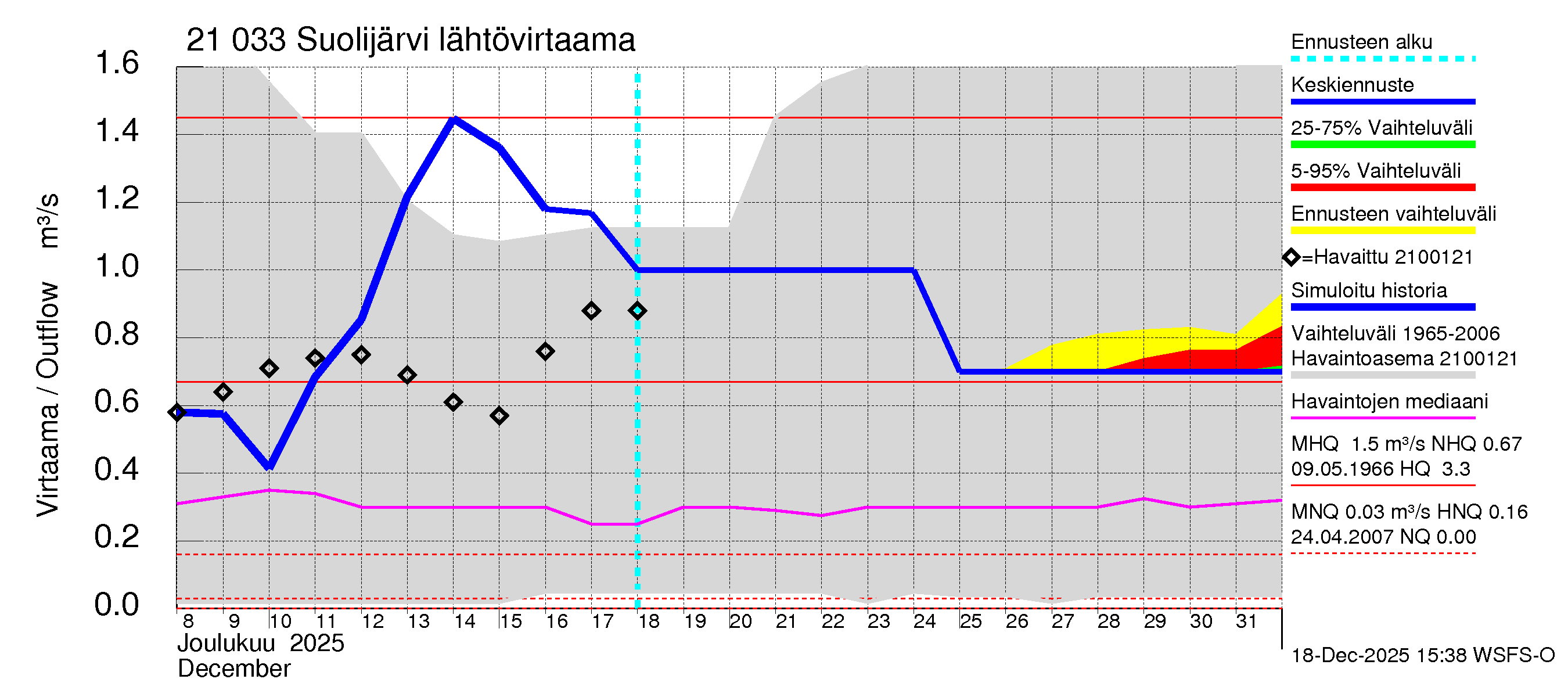 Vantaanjoen vesistöalue - Suolijärvi: Lähtövirtaama / juoksutus - huippujen keski- ja ääriennusteet