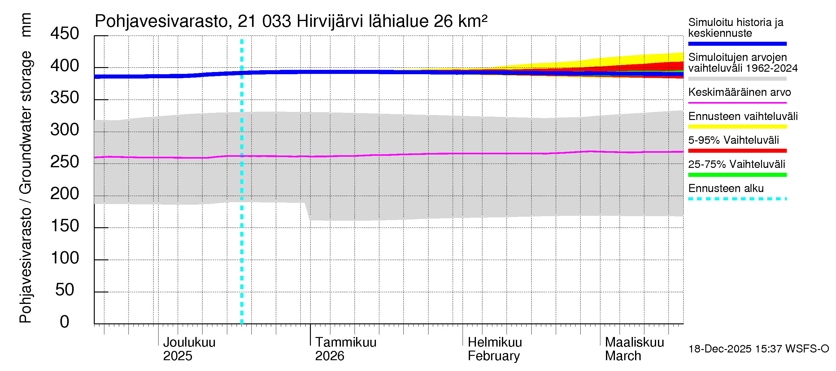 Vantaanjoen vesistöalue - Hirvijärvi: Vedenkorkeus - jakaumaennuste