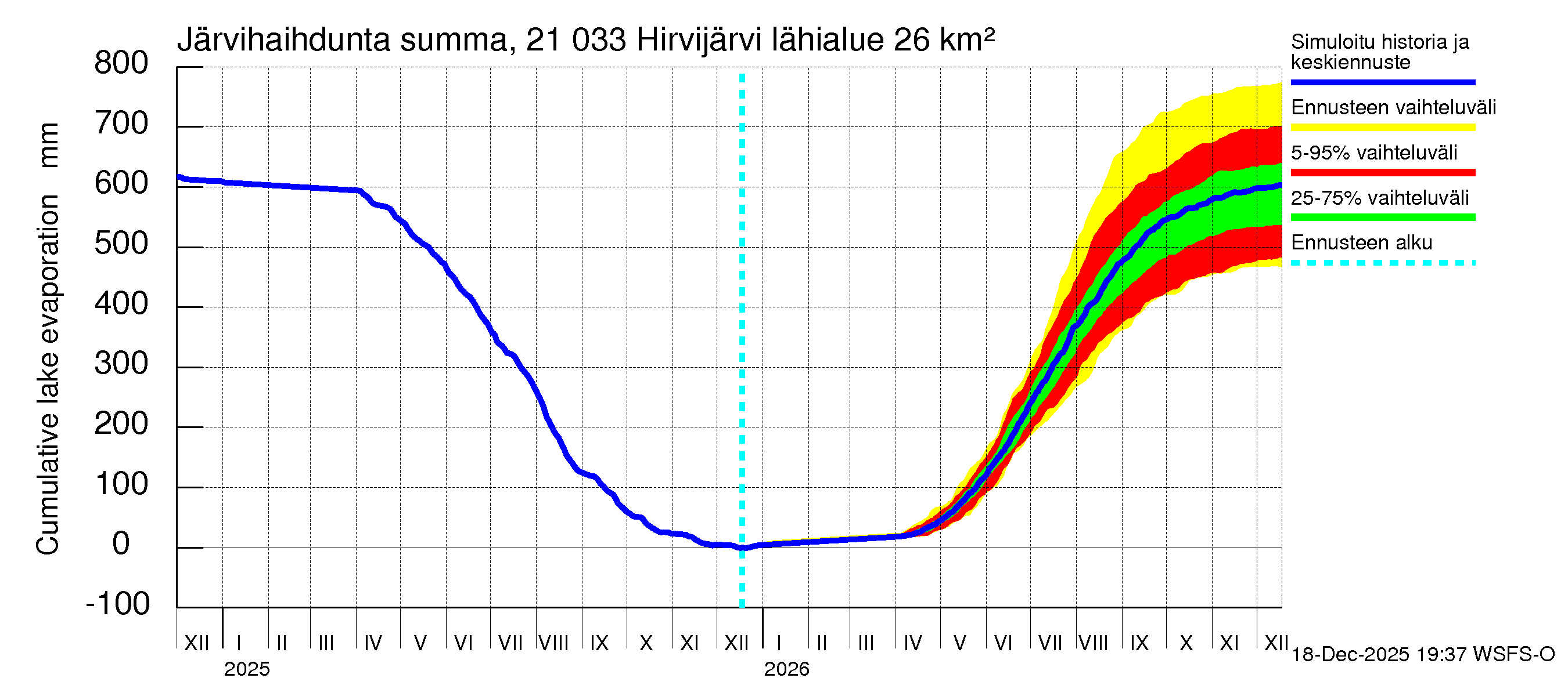 Vantaanjoen vesistöalue - Hirvijärvi: Haihdunta maa-alueelta - summa
