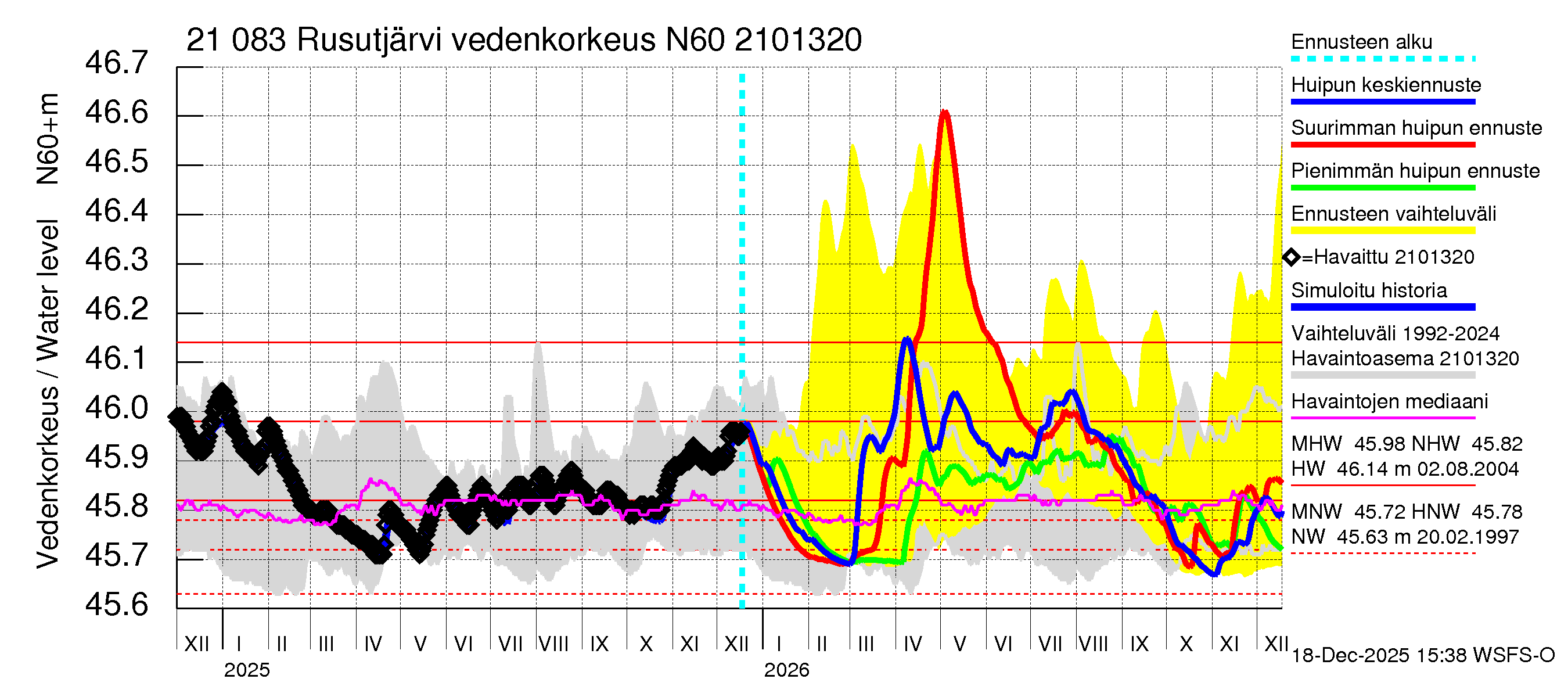 Vantaanjoen vesistöalue - Rusutjärvi: Vedenkorkeus - huippujen keski- ja ääriennusteet