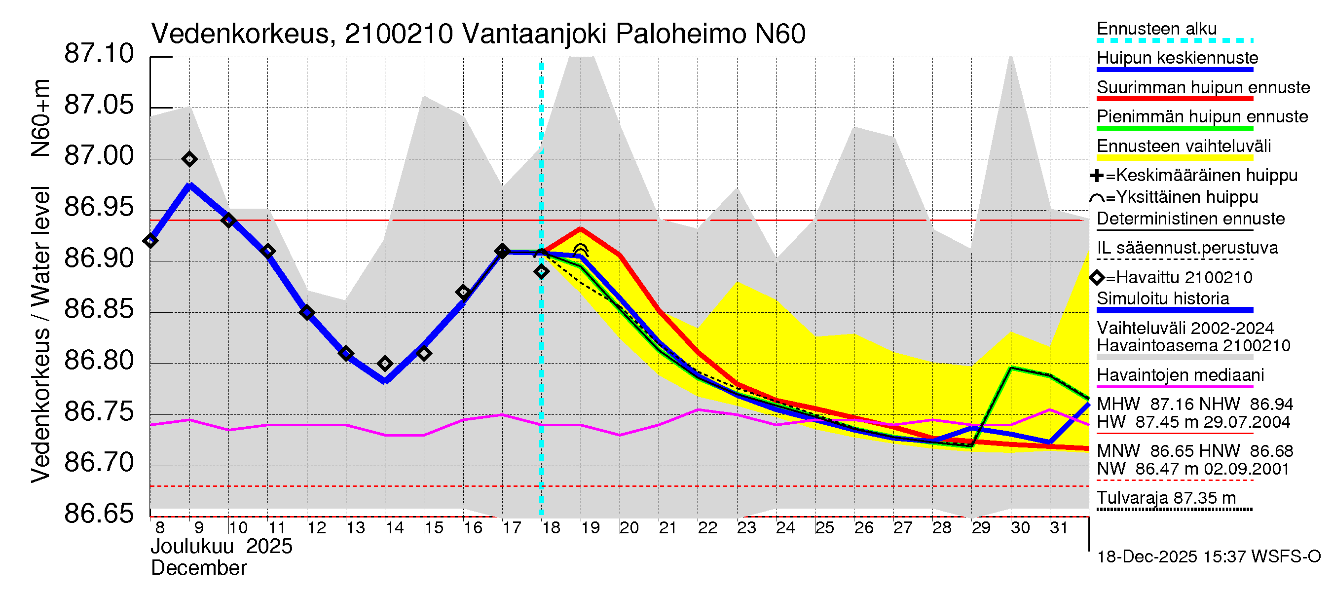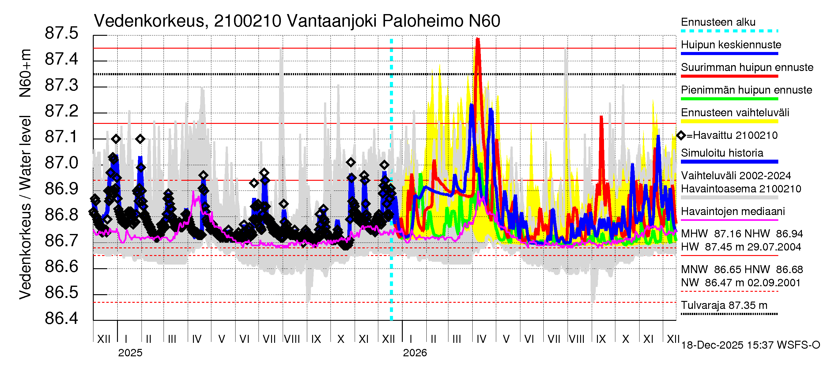 Vantaanjoen vesistöalue - Vantaanjoki Paloheimo: Vedenkorkeus - huippujen keski- ja ääriennusteet