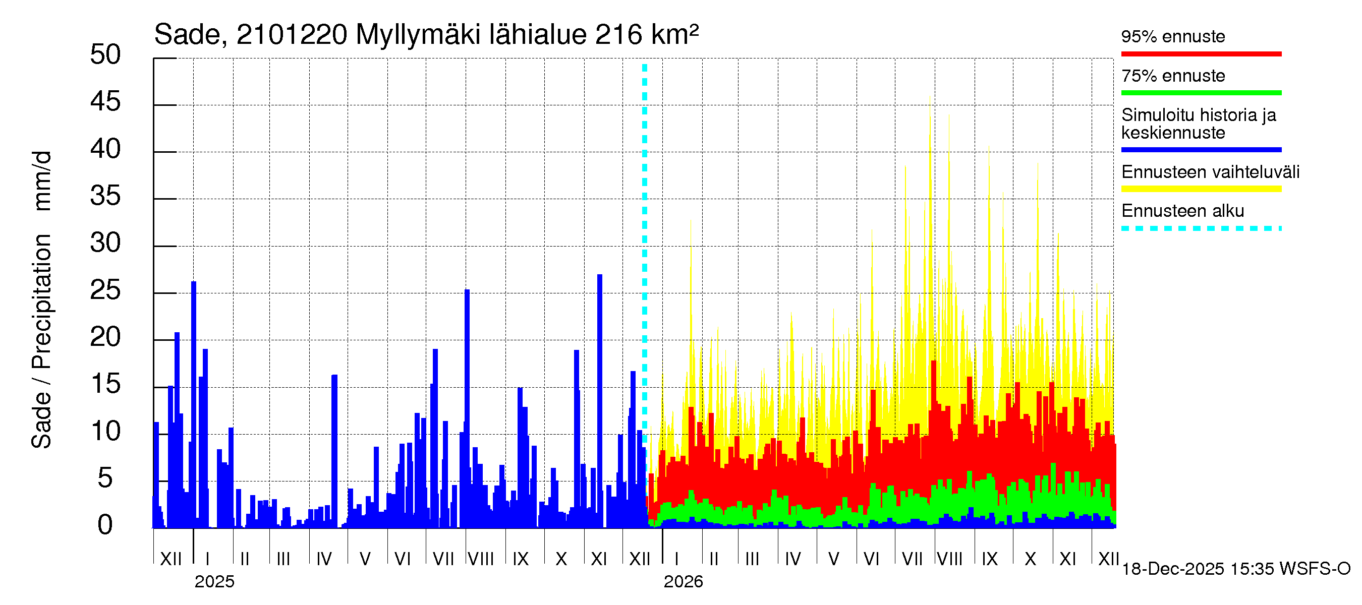 Asiantuntijan työpöytä > Vantaanjoen vesistöalue > Myllymäki > Koko valuma-alue / Lähivaluma-alue Ennustekuvien tulkinta