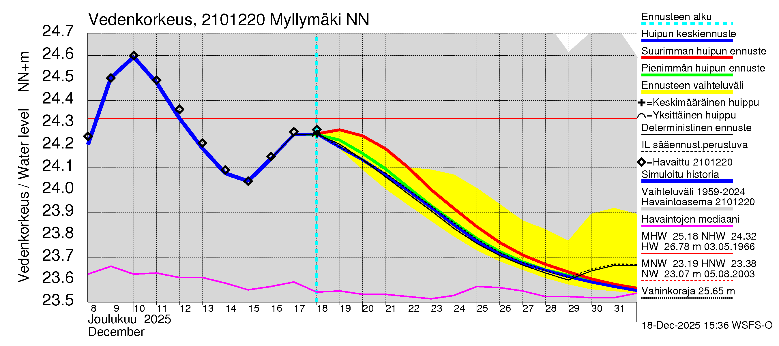 Vantaanjoen vesistöalue - Myllymäki: Vedenkorkeus - huippujen keski- ja ääriennusteet