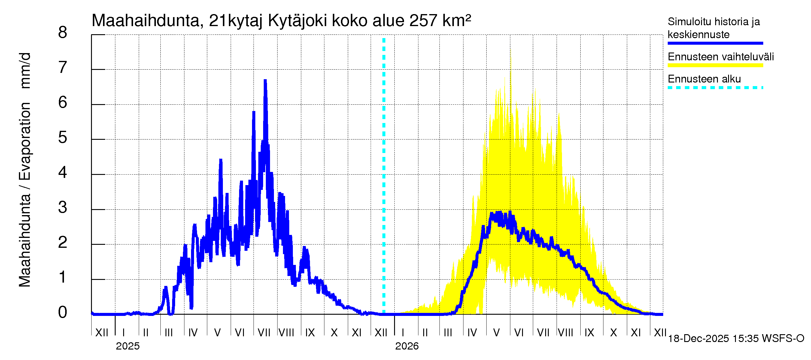 Vantaanjoen vesistöalue - Kytäjoki: Haihdunta maa-alueelta - summa