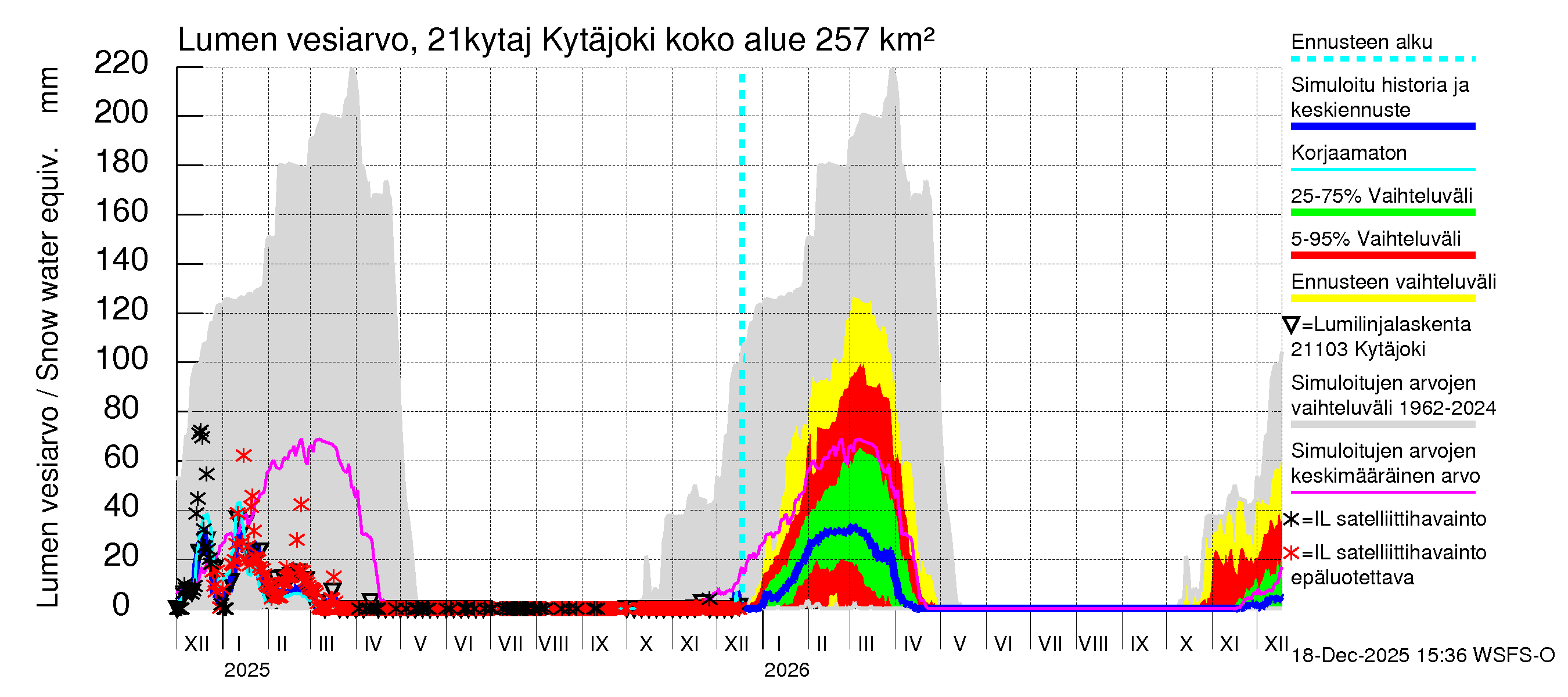 Vantaanjoen vesistöalue - Kytäjoki: Lumen peittämä ala