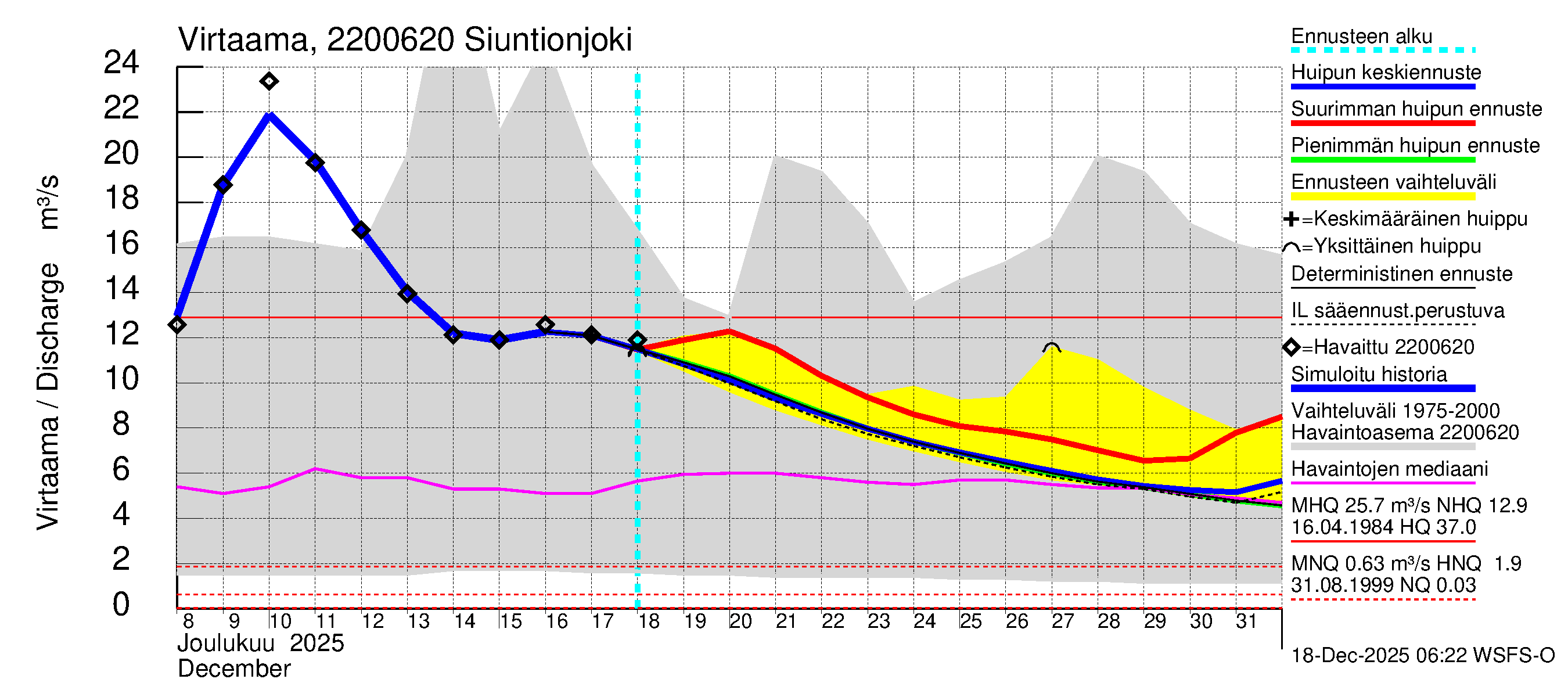 Siuntionjoen vesistöalue - Siuntionjoki: Vedenkorkeus - huippujen keski- ja ääriennusteet