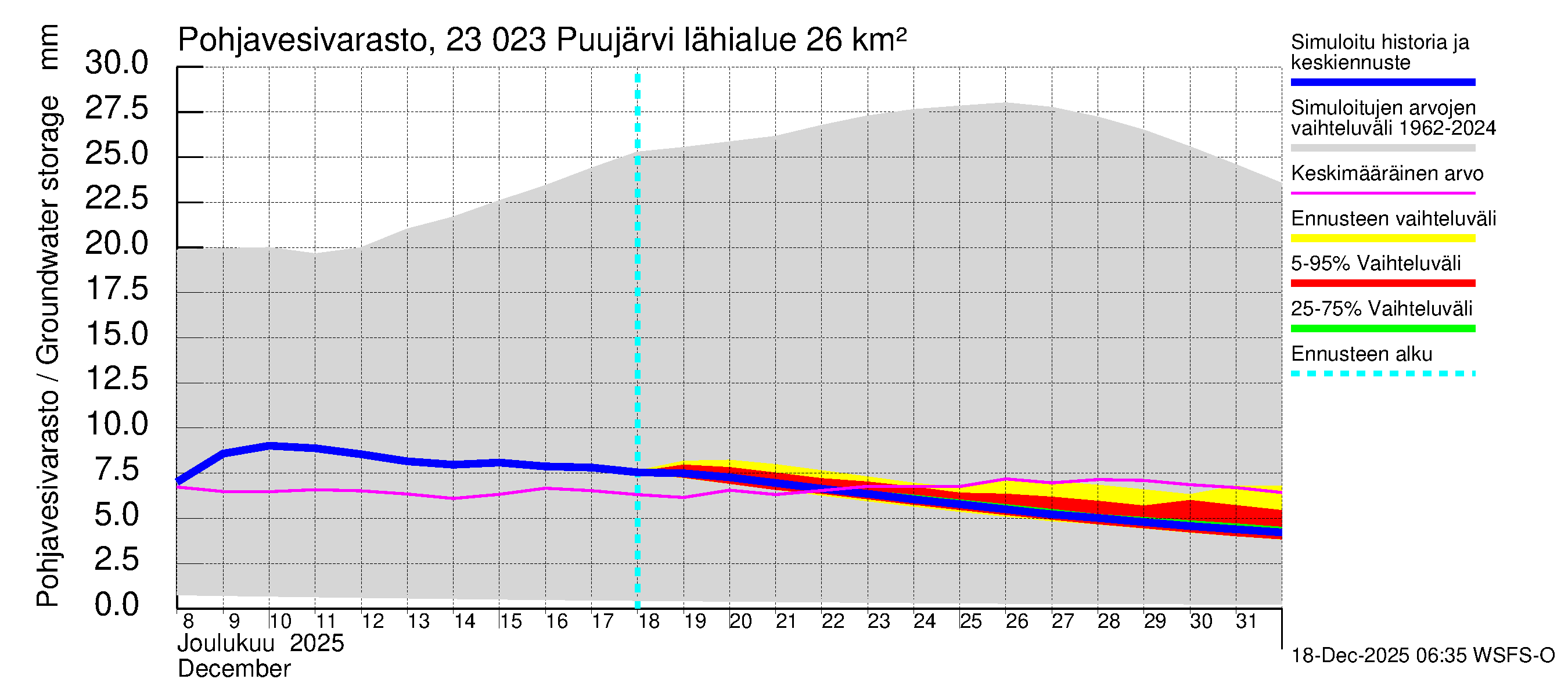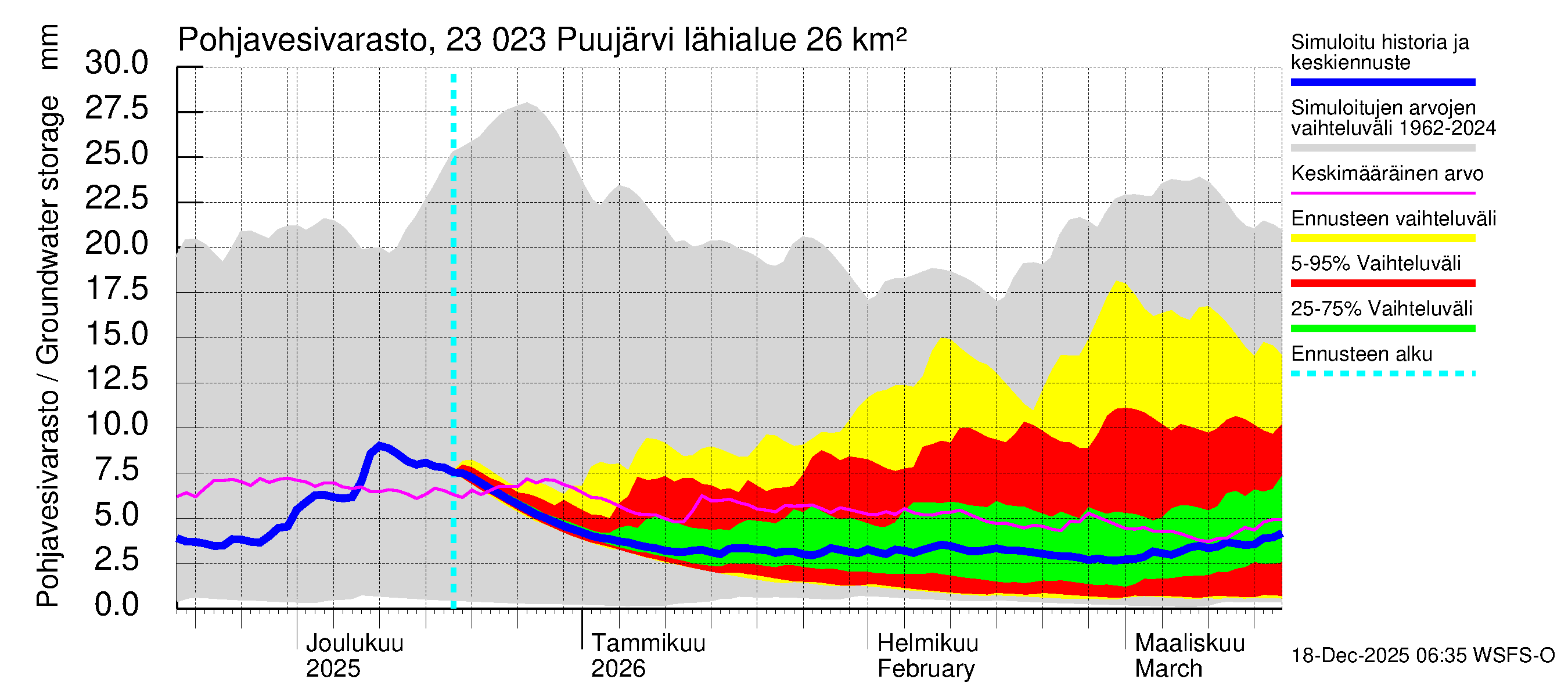 Karjaanjoen vesistöalue - Puujärvi: Vedenkorkeus - jakaumaennuste