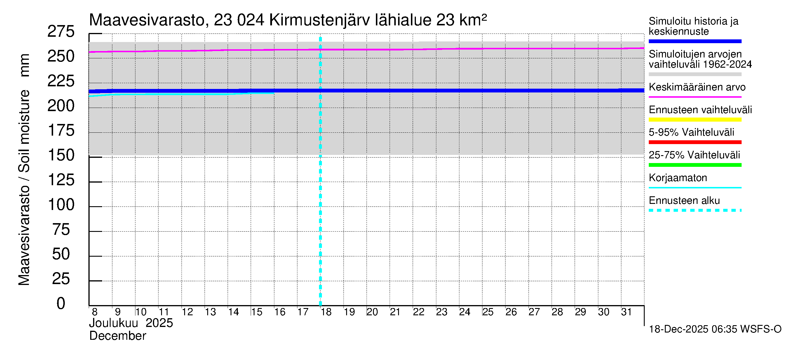 Karjaanjoen vesistöalue - Kirmustenjärvi: Vedenkorkeus - jakaumaennuste